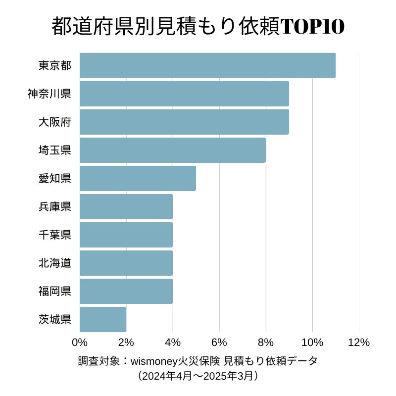 🔹1. 都道府県別・火災保険見積もり依頼割合TOP10(直近12ヶ月)