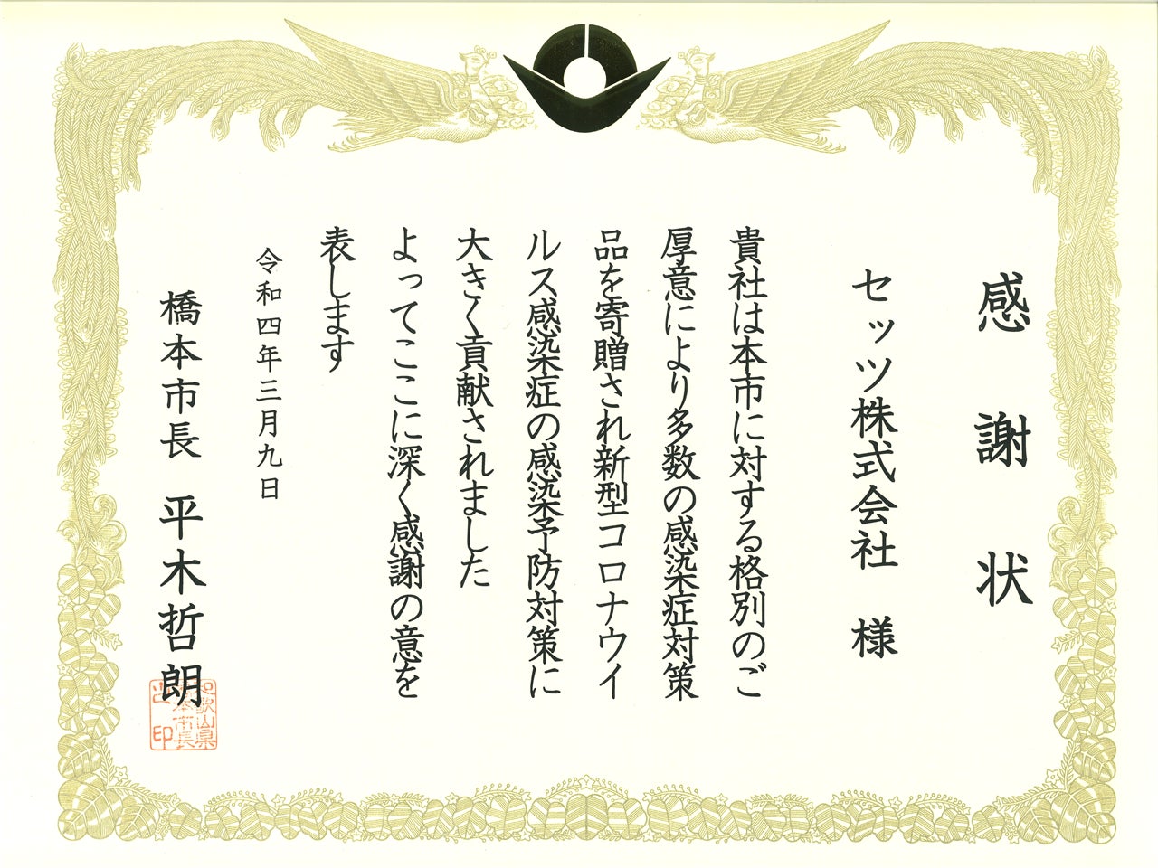 和歌山県橋本市と「災害時における衛生用品等の供給に関する協定」を締結〈セッツ株式会社〉