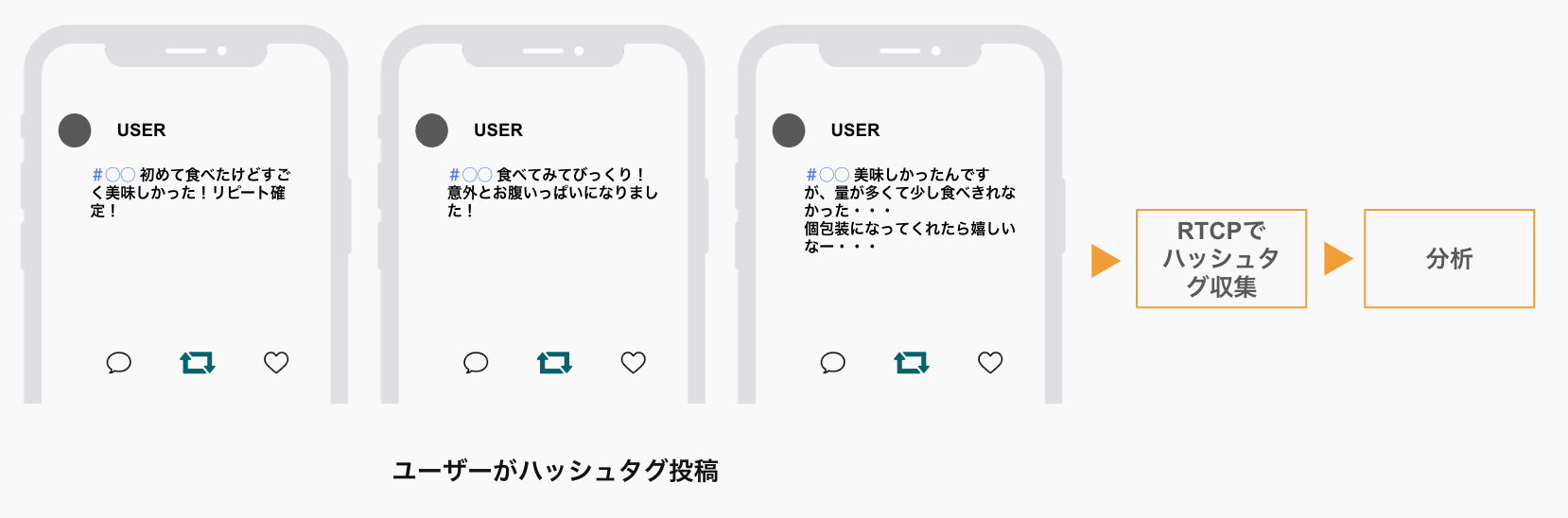 ハッシュタグを自動収集し、ユーザーの感想や口コミを収集することによって、よりリアルなユーザーの意見を確認することが可能です。