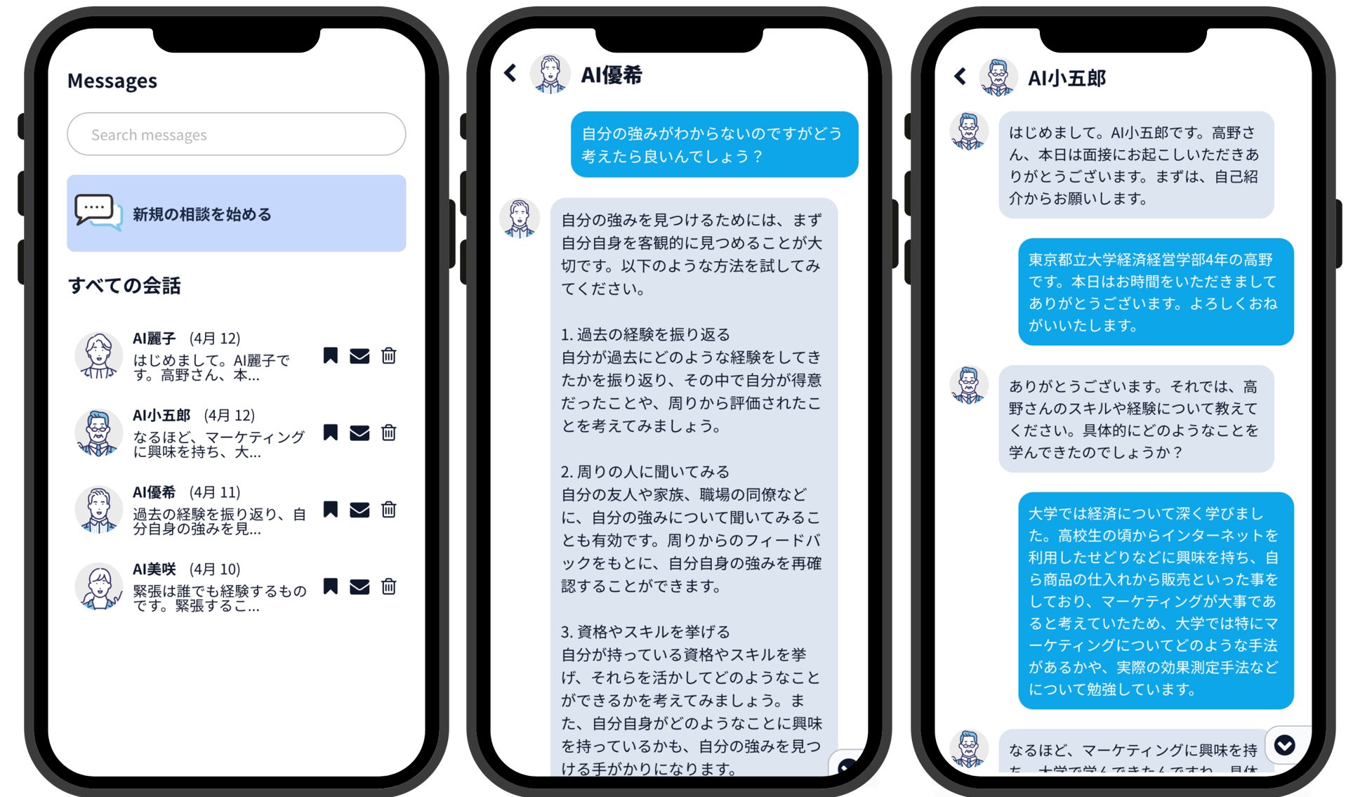 弊社は「漠然と就職活動が不安」「就職活動を進めていく中で困ったことが出てきたものの気軽に相談できる相手がいない」といった学生の悩みに徹底的に寄り添うために本サービスを開発しました。
