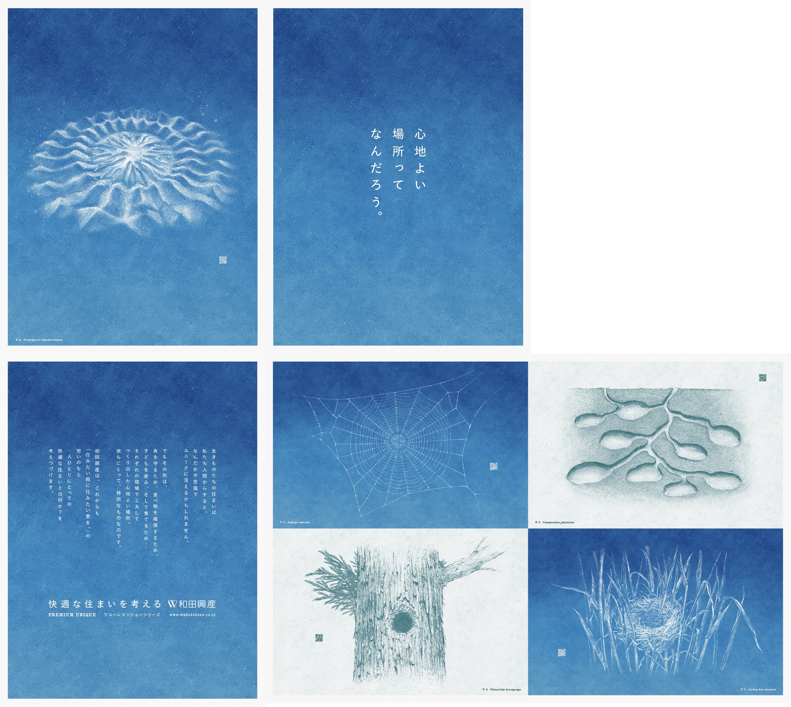 「心地よい場所」とは人それぞれであり、一人ひとりにとっての快適な住まいとは何か?を考えつづける当社の重要なテーマのひとつです。一方、自然界では昆虫や動物がそれぞれ他と異なるユニークな住まい(巣や住居)を作り、工夫を凝らした生活を営んでいます。このユニークな生きものの住まいづくりを、イラストビジュアルで展開。大人からお子様まで幅広い方々に興味関心をもっていただき、「心地よい場所」について考えるきっかけとなるコンテンツをお届けします。この新ブランドコミュニケーションを通じて、当社は今後も一人ひとりにとって「心地よい場所」となる住まいづくり、街づくりに取り組んでまいります。