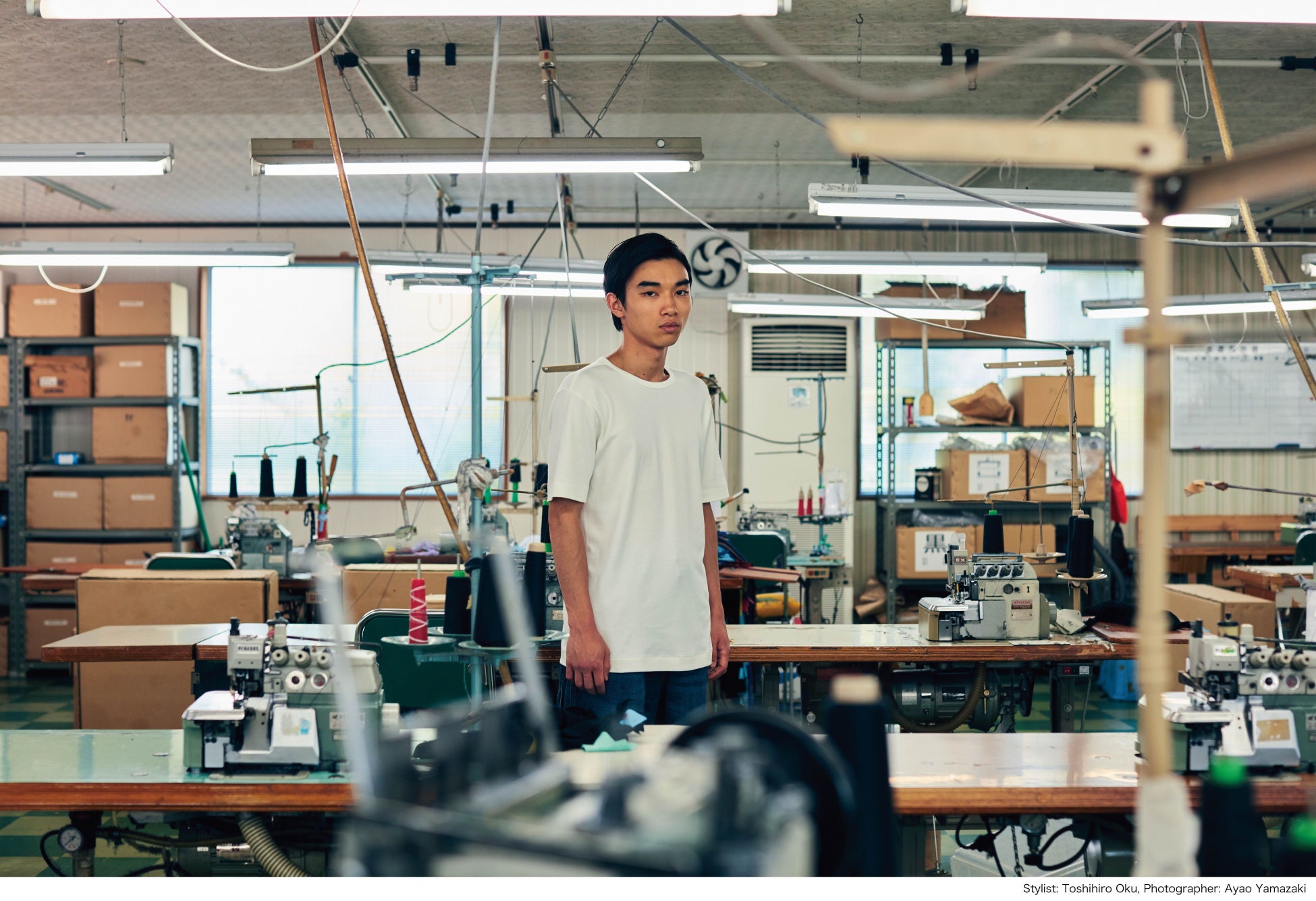 久米繊維工業は、日本製Tシャツの 原点「色丸首」を開発した T シャツ 専門メーカー。 1935年の創業以来、熟練の職人 と共に日本でこそ創りえる T シャツ を追求し続けています。