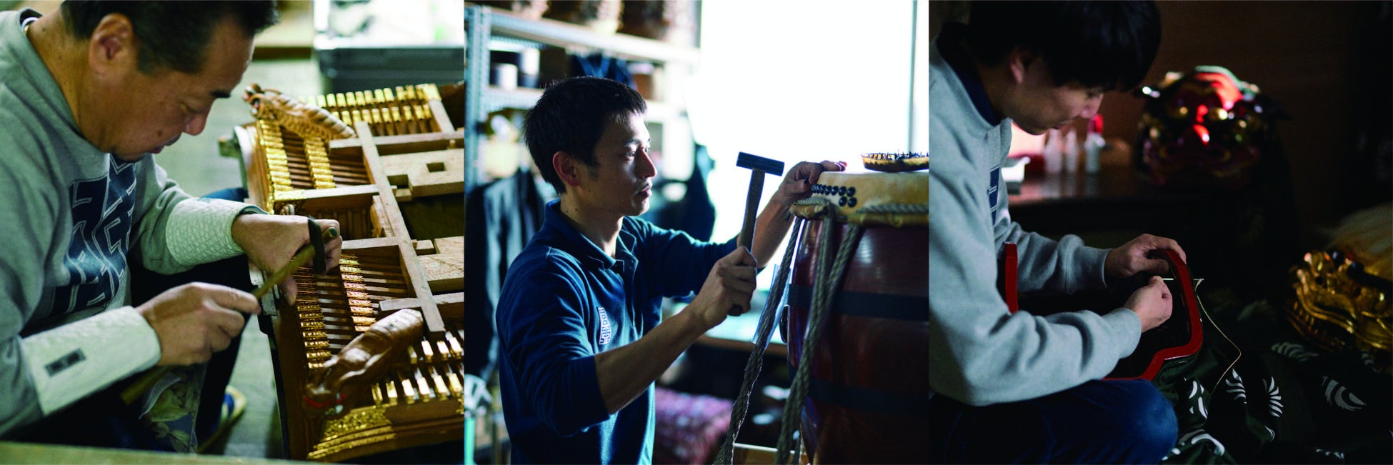 1861年(文久元年)に創業以来、神輿、太鼓・祭礼具や雅楽器の製造販売や修理、復元及びレンタルを行っています。祭と伝統芸能の保存と発展を使命とし、SDGsプロジェクト「森をつくる太鼓」や和太鼓スクールHibikusの運営、和太鼓アンサンブル「いやさかプロジェクト」なども手掛けています。