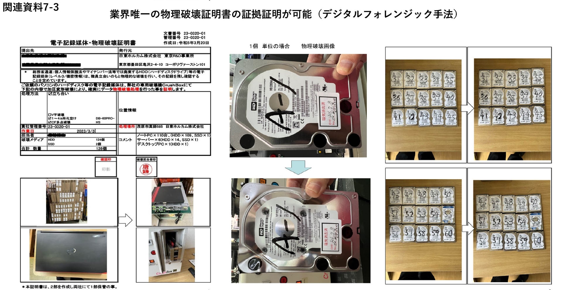 日東ホルカム株式会社(本社:千葉県茂原市、代表取締役:唐鎌益男)と株式会社ピーシーキッド(本 社:東京都千代田区、代表取締役:平岡哲夫)は業務提携契約を締結。データ消去装置の共同レンタル(個数課金)プラットホームに、デジタルフォレンジックのピーシーキッドの参加で、業界初のデータ適正消去の証拠証明が可能になりました。