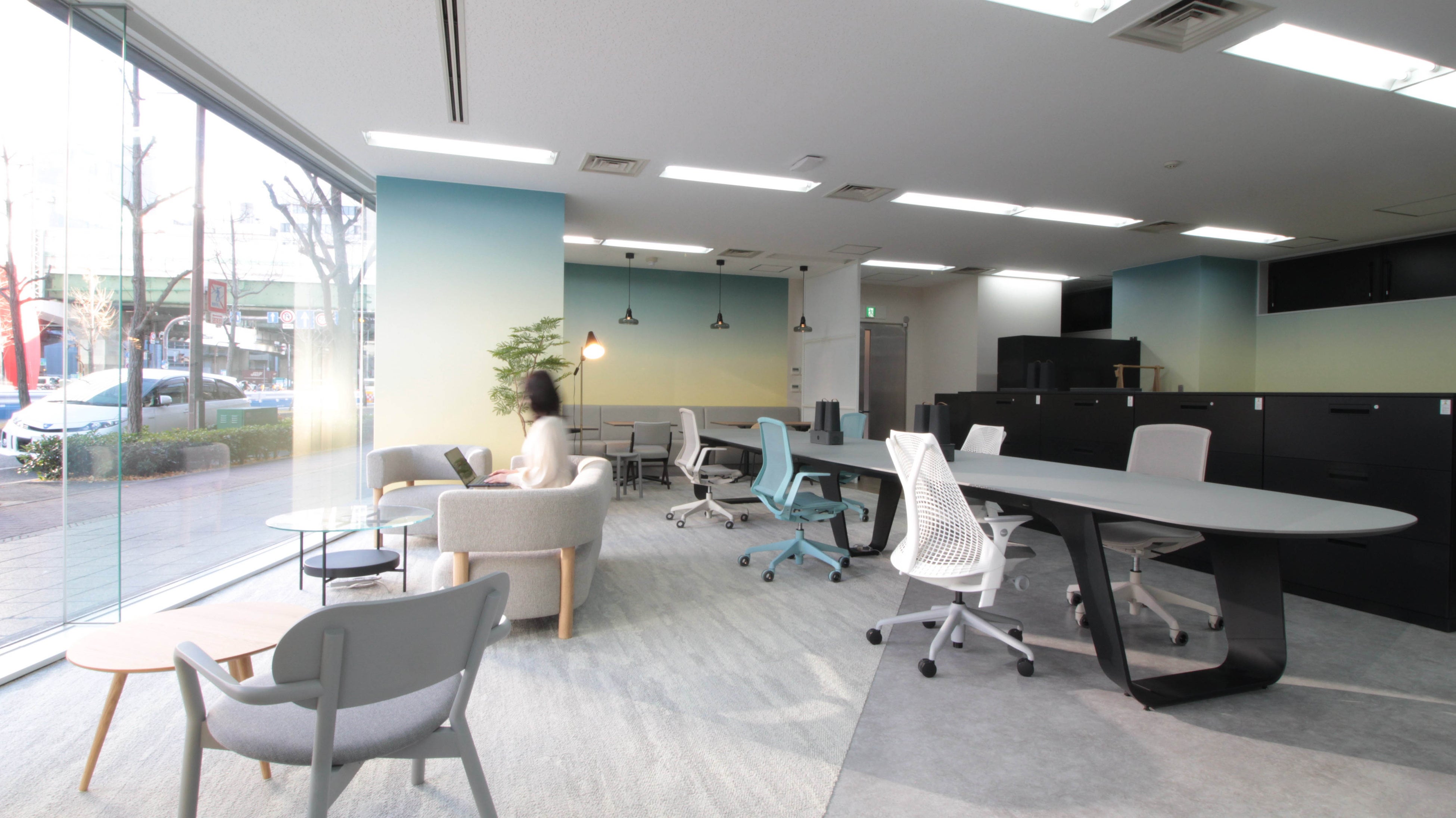 2)ショールームであることを意識しつつも、柔軟に働ける環境づくりオフィス各メーカーの最新家具を発信