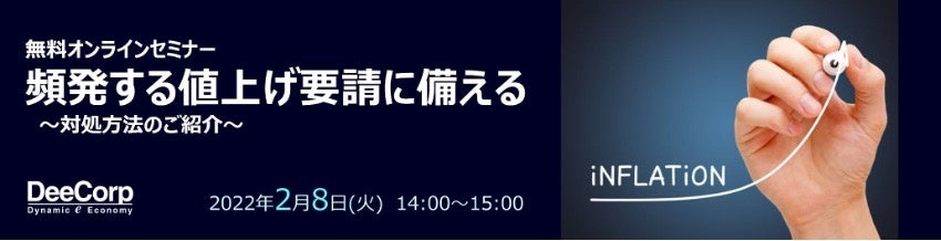 【頻発する値上げへの対応策】2月8日(火)ウェビナー開催 間接経費分野のコスト削減を支援するディーコープが、エネルギーコスト値上げなど支出増加への対処策を紹介するオンラインセミナーを開催します