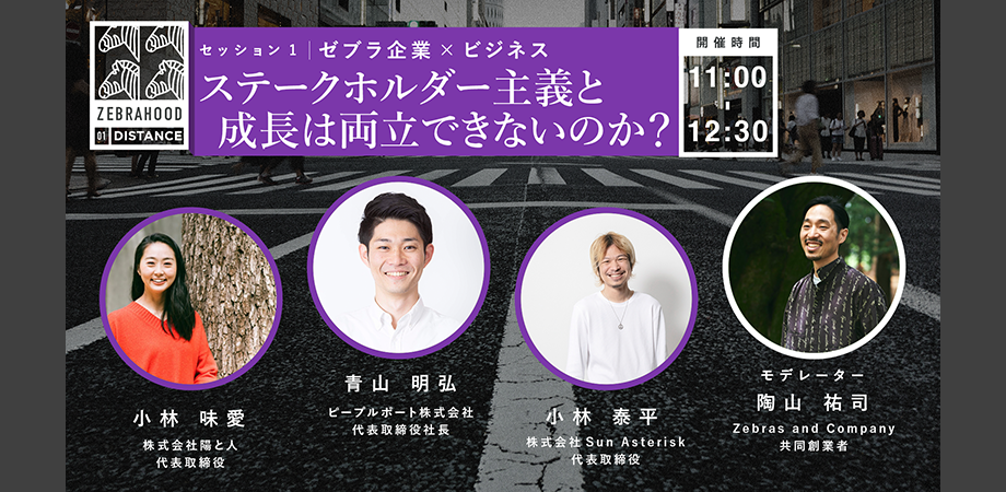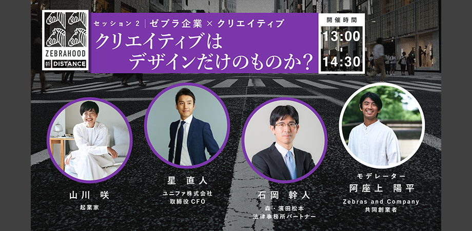 「ゼブラ企業とは具体的にどのように考え行動しているのか?」をコンセプトに、4つのテーマそれぞれのゼブラ企業の中の人と、これから社会人を目指す現役大学生とのダイアログ形式で、ゼブラのこれからを語り合う1回90分のセッションです。