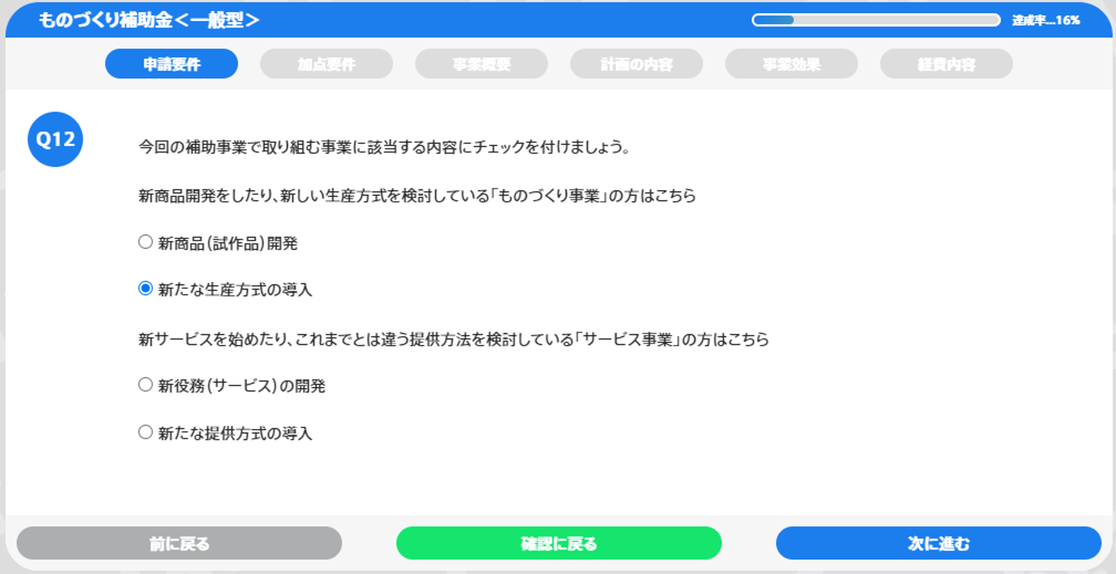 補助金等の申請資料は申請条件に応じて提出書類や記載箇所が異なることが多くあります。Scalarでは申請者の入力内容に応じて最適な質問やヒントを出し分けるアルゴリズムを組んでおり、情報を過不足なく提供可能です(特許出願済)。これにより、初めから専門家を頼るのではなく、事業者自身が未来を見据えて記載できるようになることを目的としています。
