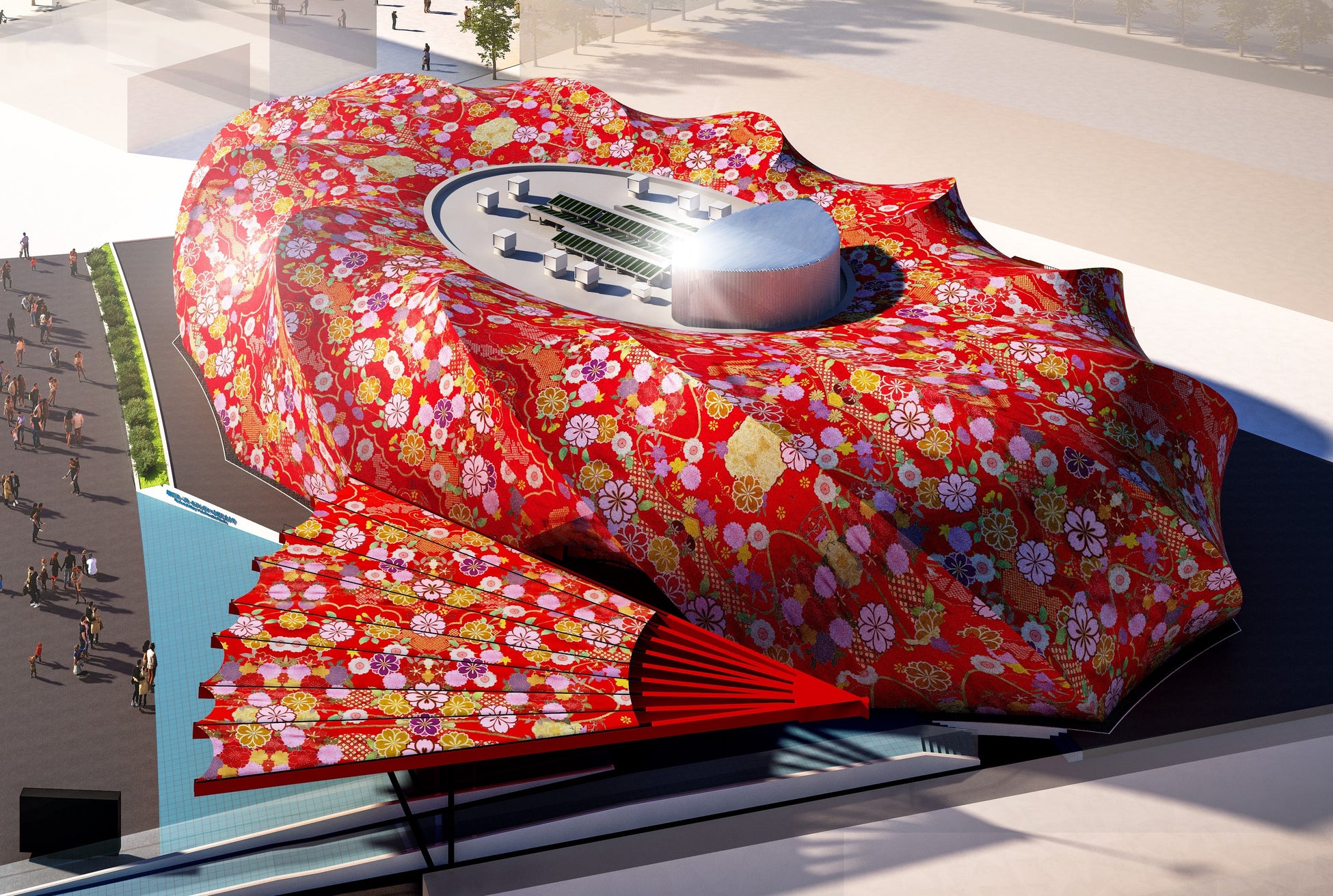 当パビリオンは伝統と進化の融合、そして持続、循環、継承、進化を象徴する「サステナブル・メビウス」をテーマにした外観デザインであり、かつてない規模の西陣織建築です。メビウスの輪を応用した三次元の構造物に、最新技術を駆使した西陣織を全面に纏わせた特徴的な建築物です。