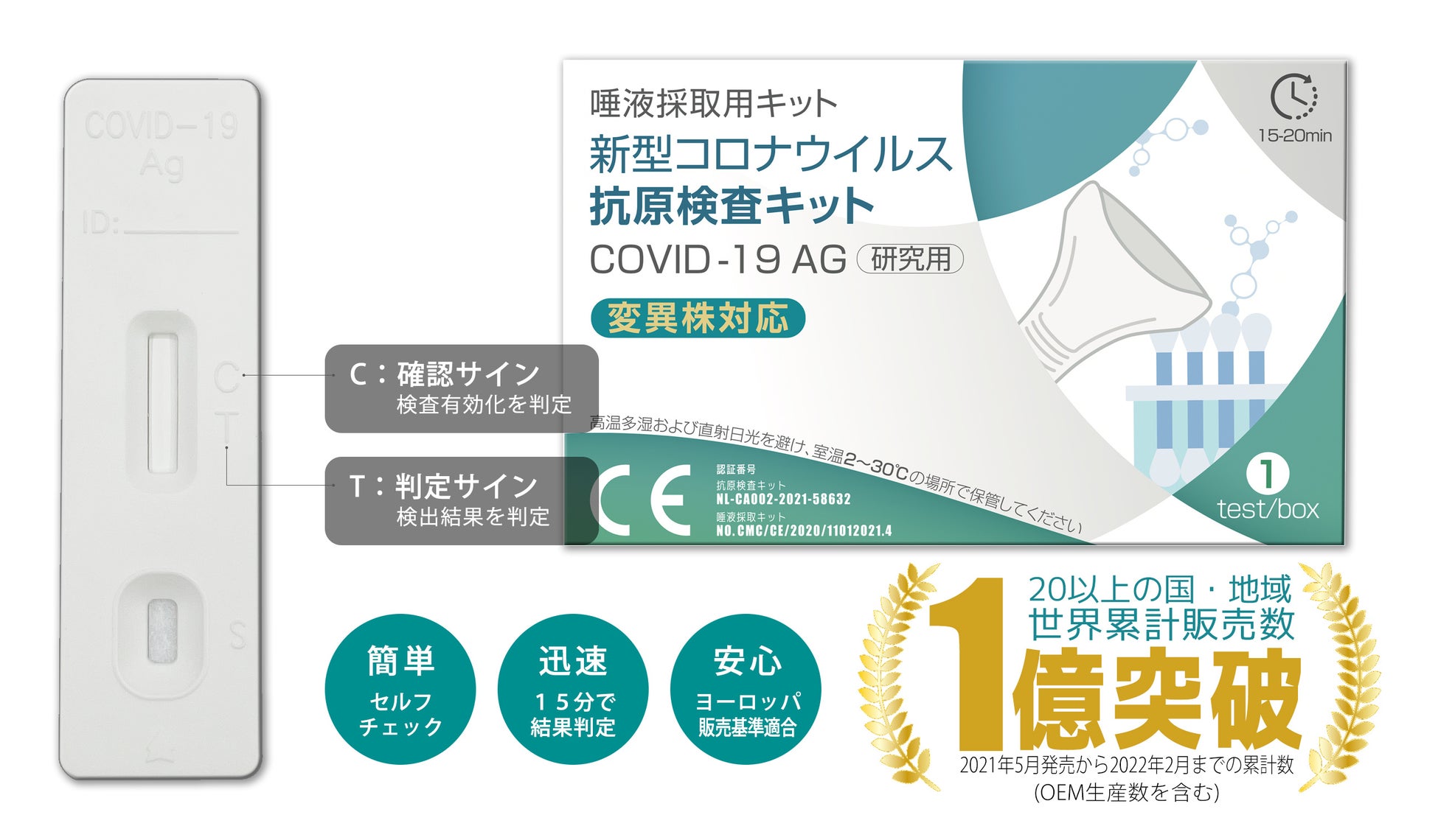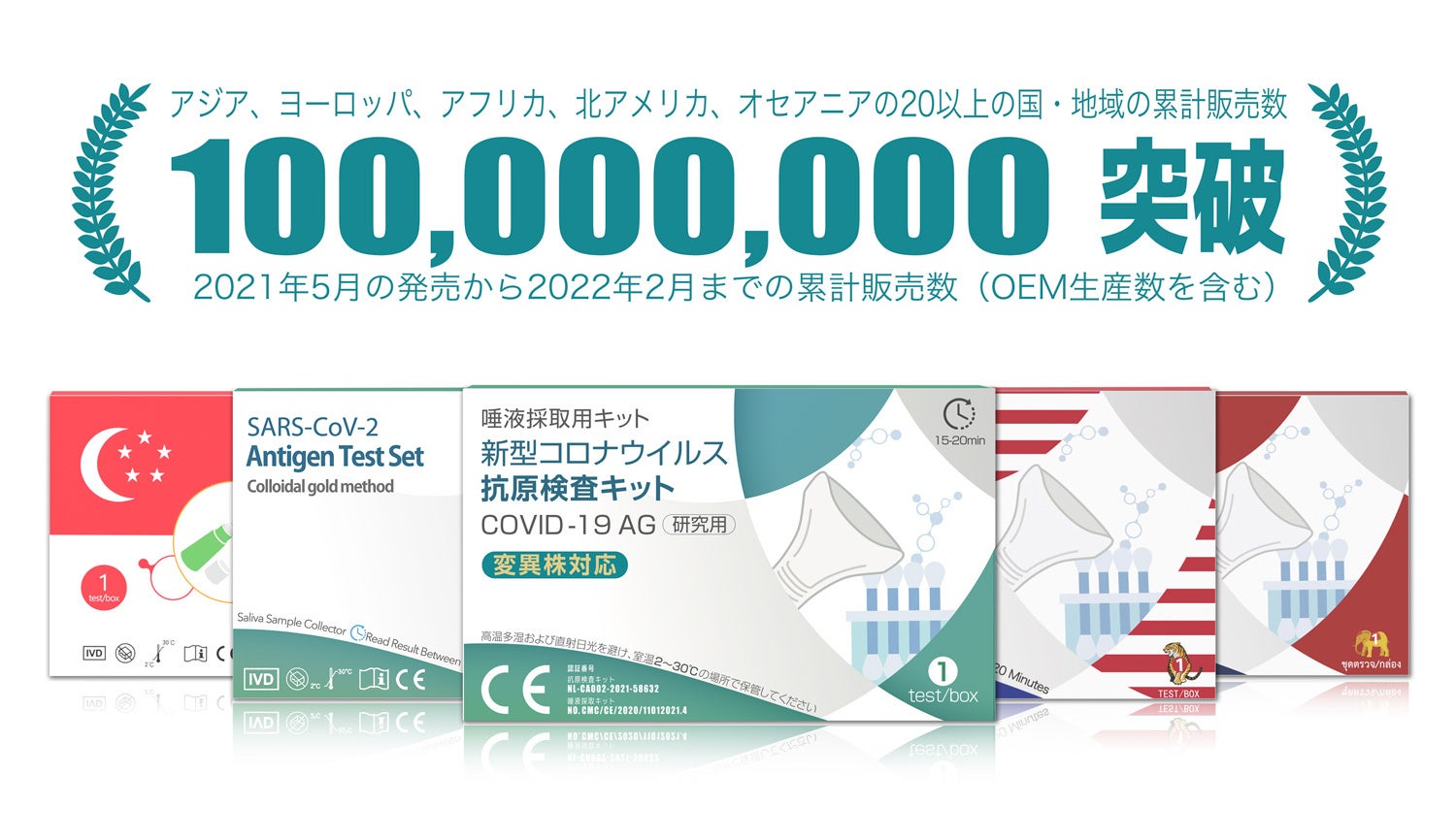 この度、当社が販売している新型コロナウイルス抗原検査キット[研究用]が、2022年2月末時点において、世界の20以上の国・地域で販売され、累計販売数が1億個を突破しましたので、お知らせいたします。