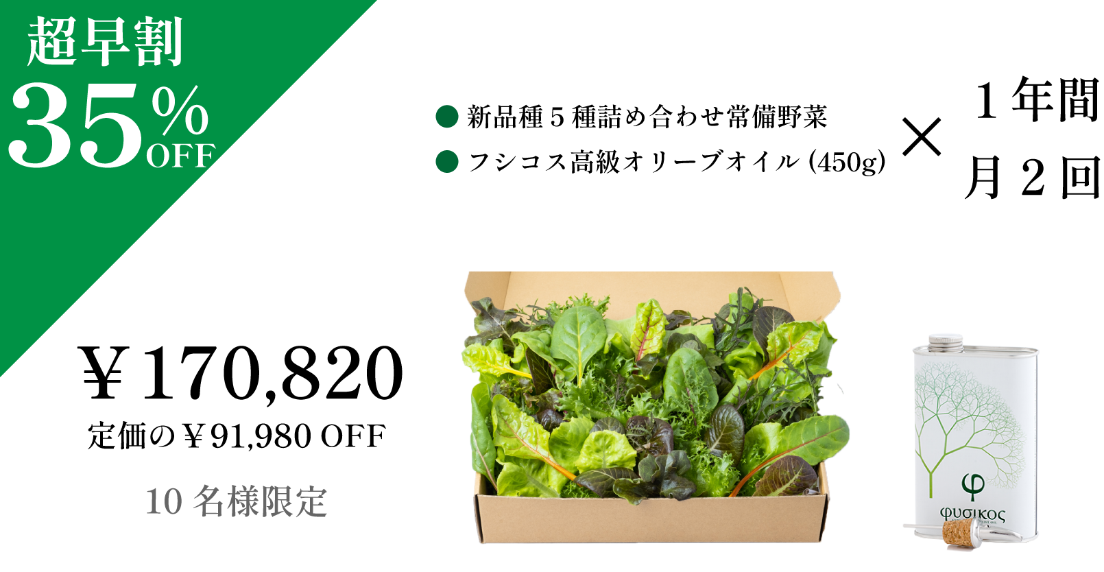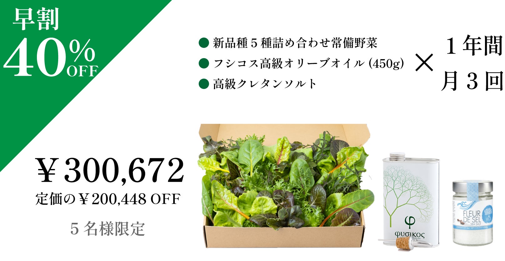 各メディアで話題沸騰!『採れたて、無農薬、無菌の野菜。』収穫から30分で食卓へデリバリーすることで4週間日持ちする野菜。「都会のガラス張りの畑」が野菜物流の常識を変える。