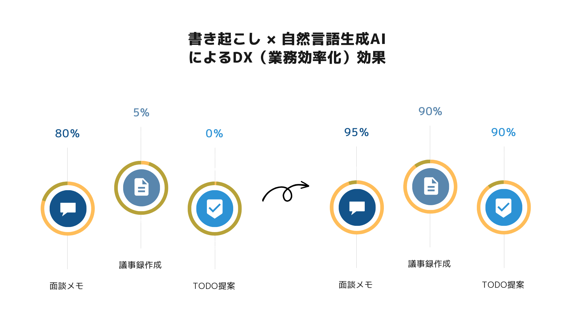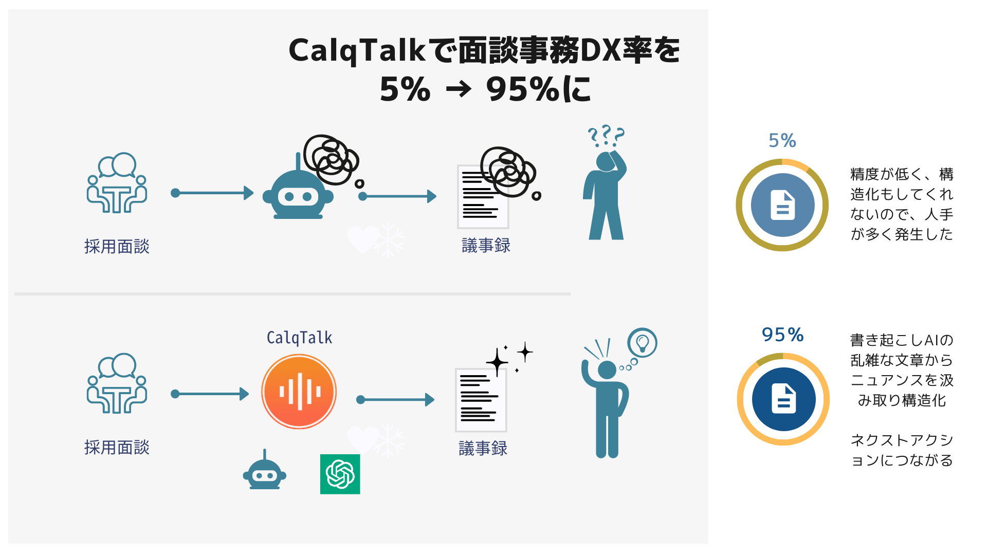 ChatGPTの活用により 従来型書き起こしAIの5%の面談事務削減割合を95%に向上