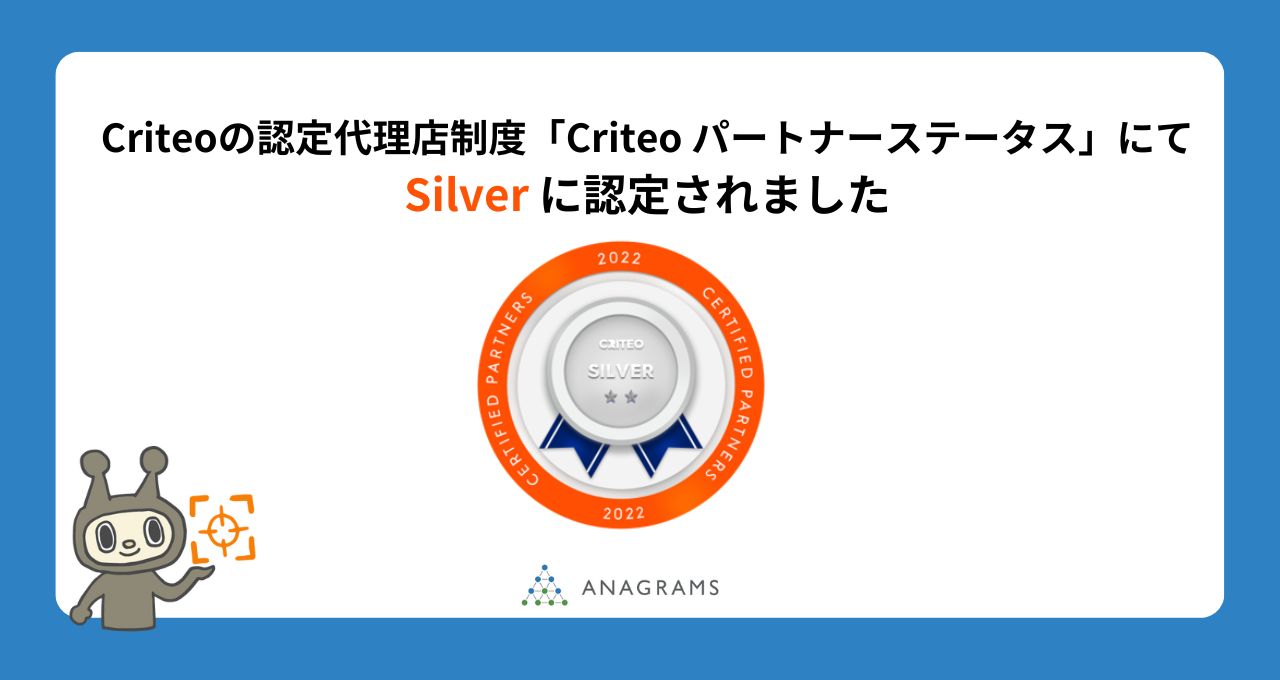 Criteoの認定代理店制度「Criteo パートナーステータス」にて、「Silver」に認定されました
