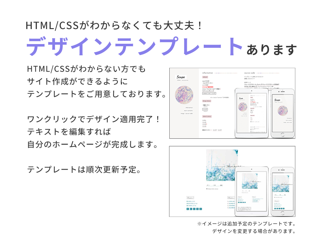 HTML/CSSの編集が可能なので、自分好みのデザインにカスタマイズすることも可能です。