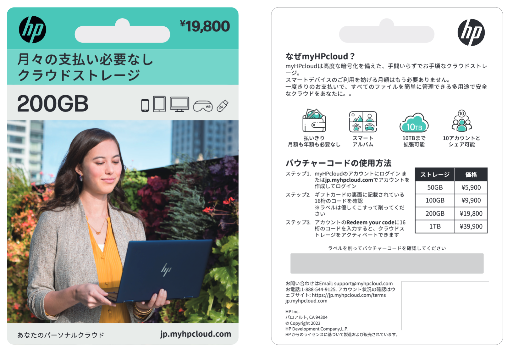 「myHPcloud」の提供開始とともに、「10GB無料ストレージ」から「1TB(テラバイト)」へアップグレードできるバウチャーコードの期間限定プレゼントキャンペーンをスタート。