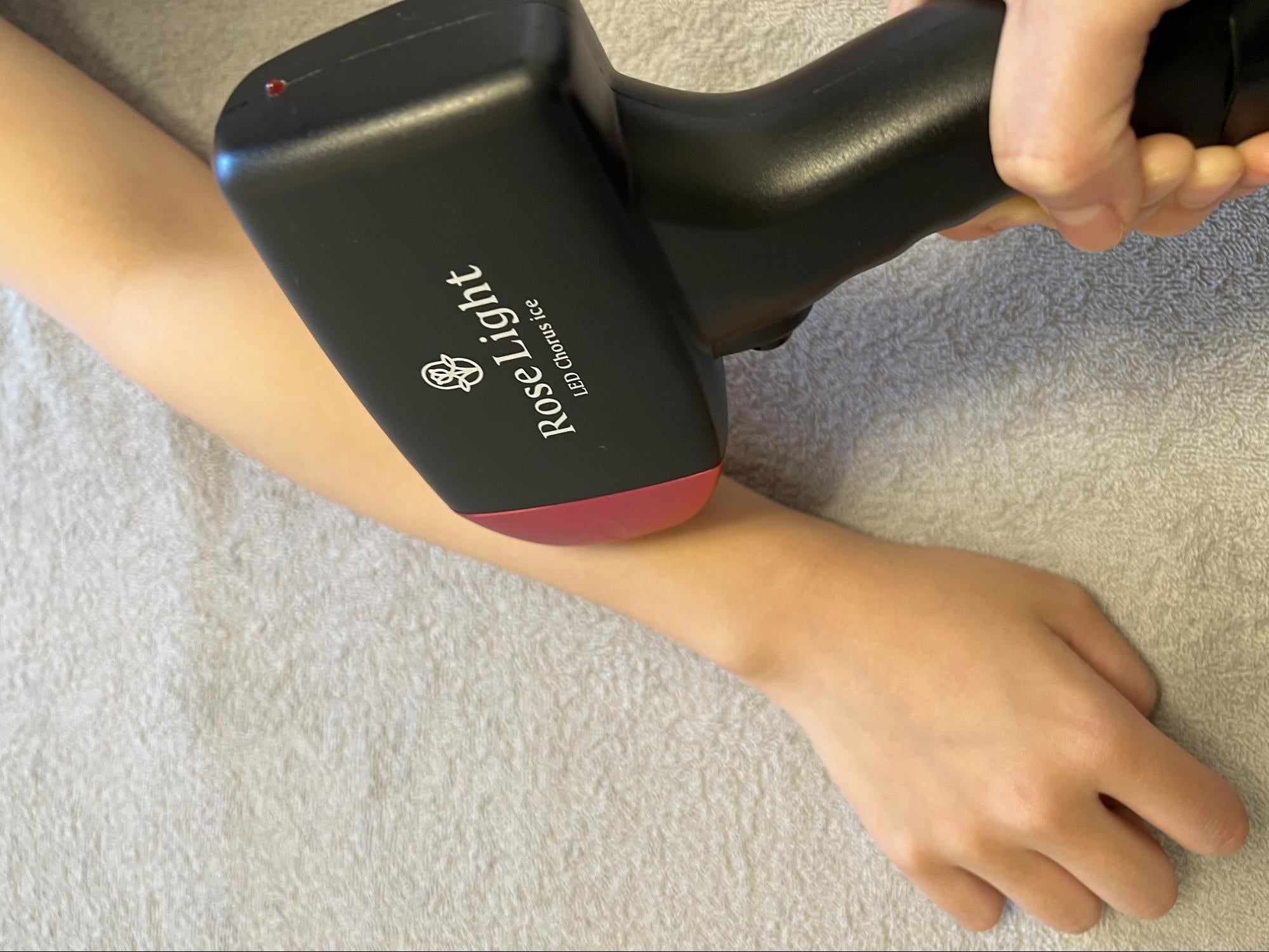 この考えのもとで導入した装置がRose Lightです。Rose Lightは脱毛に最適な波長の光を発するLEDビームを使用しており、少ない光量での脱毛を実現しました。光量が少ないため施術中の眩しさも少なく、肌へのダメージ、痛さも少なめ、施術後はマッサージを受けたかのように肌が温かく、ツヤやハリを感じられます。