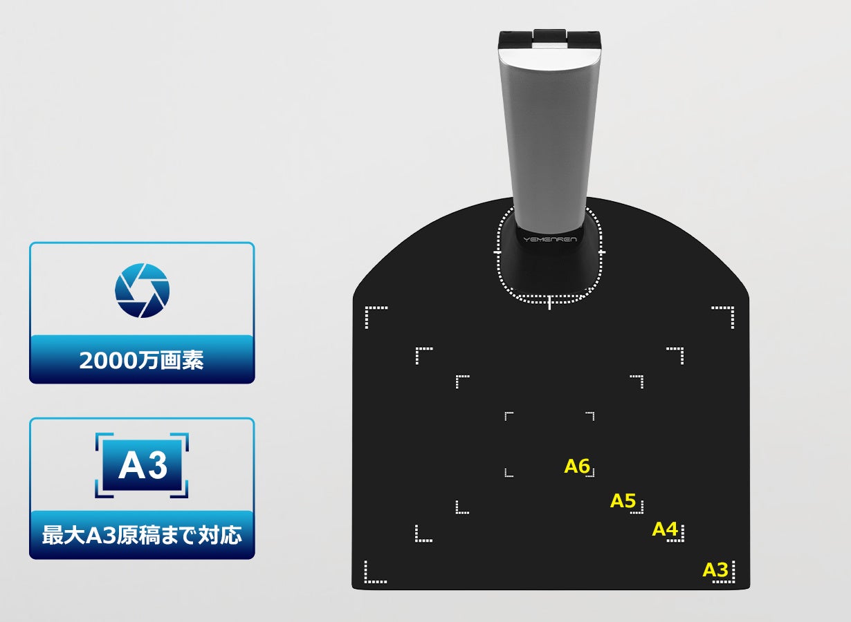 2000万画素高画質、軽量なのにハイスペック!一度のスキャンで範囲内のコンテンツを全て読み取り、個別に保存できます。切符や名刺などのスキャンに最適!
