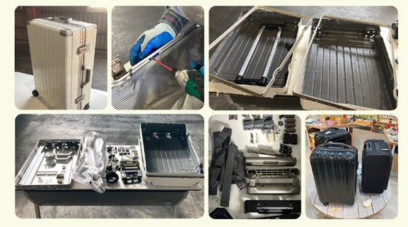そこで、私たちはいらなくなったスーツケースを引き取って部品ごとに解体し、