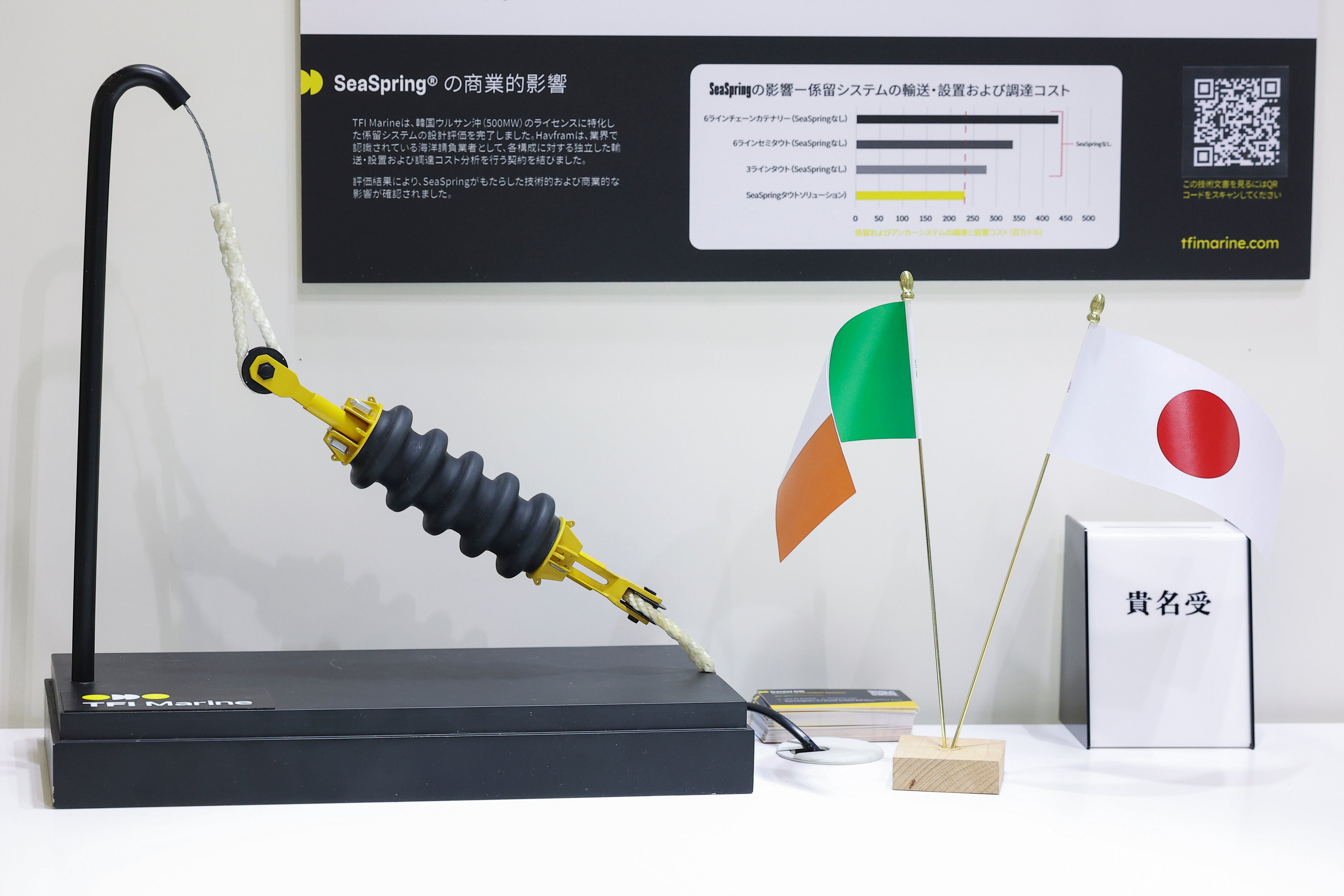TFI Marineは、浮体式洋上風力向けの高度な係留技術を開発するアイルランドの海中エンジニアリング企業です。同社の「SeaSpring®」は、DNVおよびClassNKの両方から認証を取得した唯一の海中係留荷重・疲労低減デバイスであり、係留荷重や疲労を低減するとともに、システム寿命の延長とプロジェクトコストの削減に貢献します。