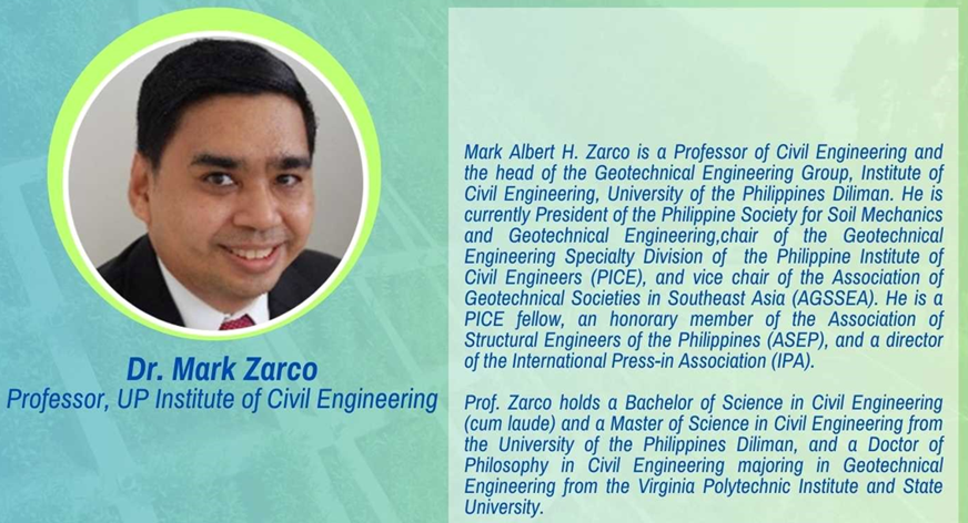 本セミナーには、フィリピン地盤工学会会長も務められているフィリピン大学のMark Zarco教授から、フィリピンの地すべりについて講演をいただきます。