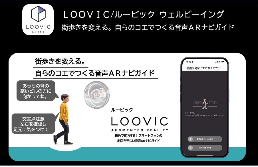 10月下旬を目途に移動支援テクノロジー『LOOVIC』の技術を活用した初の一般向けフリーミアム版アプリ「LOOVIC Light」をリリースします。自らのコエで自身または誰かのために音声ARナビガイドを作ることが可能で、『LOOVIC』のテクノロジーの基本部分を体験できるお試しアプリになります。
