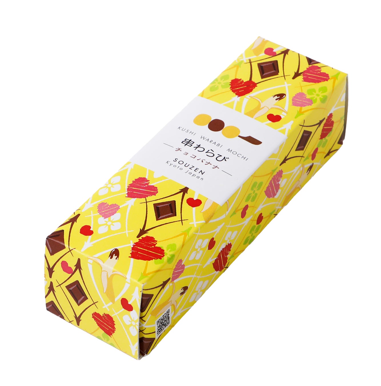 今回、チョコレートとバナナの相性の良さを生かし、チョコバナナ味のわらび餅を作り上げました。チョコレートの濃厚さとバナナの香りが口の中で広がり、ほっこりとひと時の幸せを感じていただけます。また、パッケージにはハートのマークをつけて、バレンタインデーにぴったりのデザインにしました。