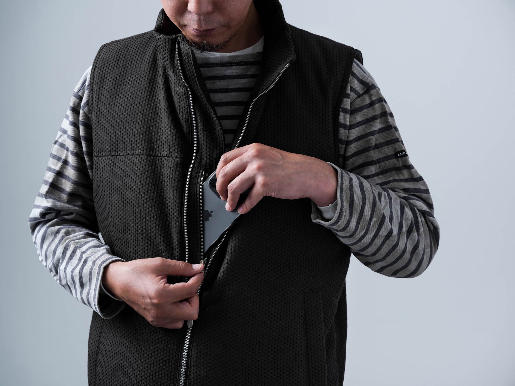 大人気の本染め刺子ダウンジャケットの新しいバリエーションとして、ダウンベストが仲間入り。
