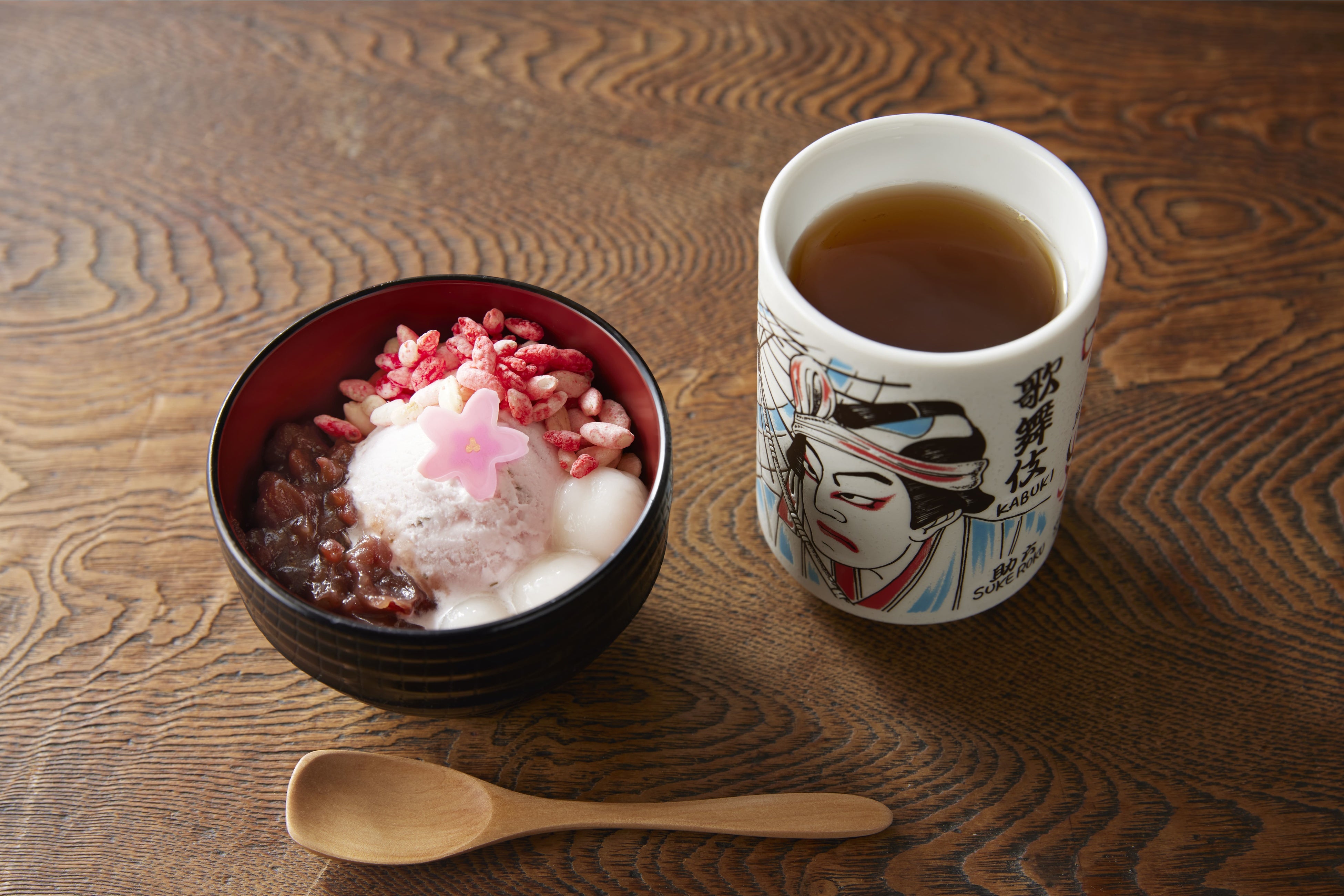 食堂助六屋の店主の気まぐれで販売されるという和スイーツ「助六屋ぜんざい」に春味が登場。さくらのアイスクリームが乗った食後にぴったりのデザートです。