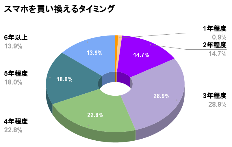 スマホは何年で買い替えるかのかをアンケート調査した結果は次の通りです。