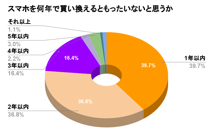 スマホは何年で買い替えるともったいないと思うのか調査した結果は次の通りです。