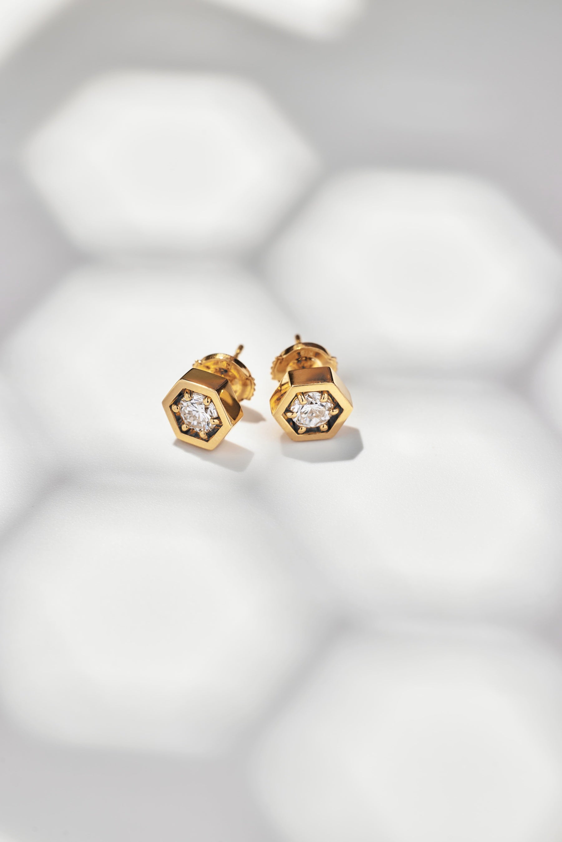 蜂の巣=ハニカムを、洗練された六角形のアイコンとして落とし込んだピアス。