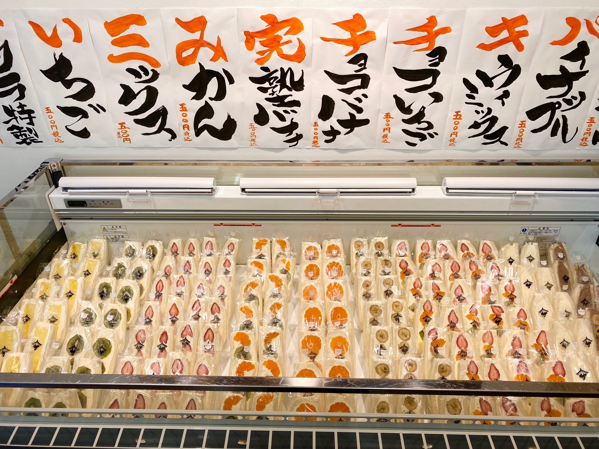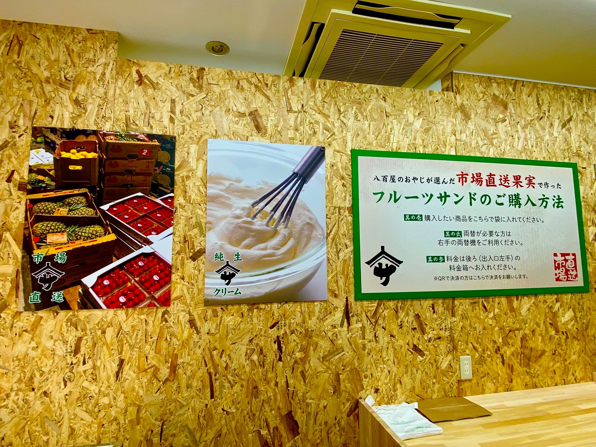 セルフ形式で自らフルーツサンドを包装台までもっていき自身で袋に入れる。