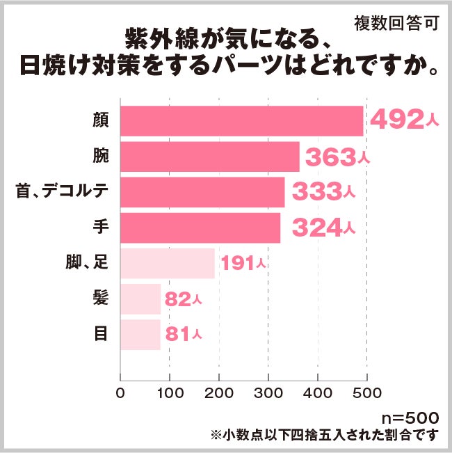 今回は紫外線が気になっている女性500人にどのような日焼け対策をしているか、使っている日焼け止めや紫外線対策の悩みについてお聞きしました。
