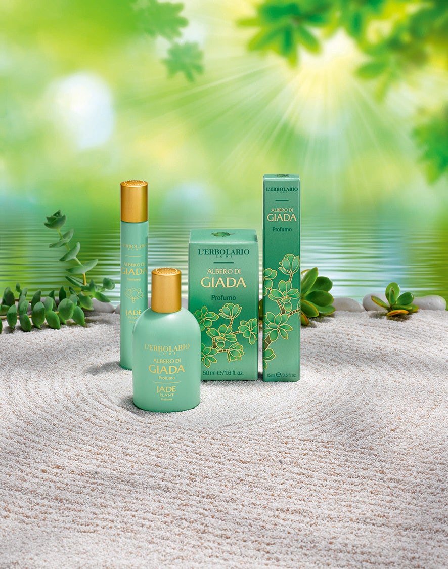 レルボラリオでは、このコレクションのために大切に育んだアルベロ ディ ジャーダの葉から、保湿性に富んだエキスと※1とエレガントな香りのアロマウォーター※2を抽出。生き生きとしたツヤを放つ美しいお肌を目指すコレクションです。