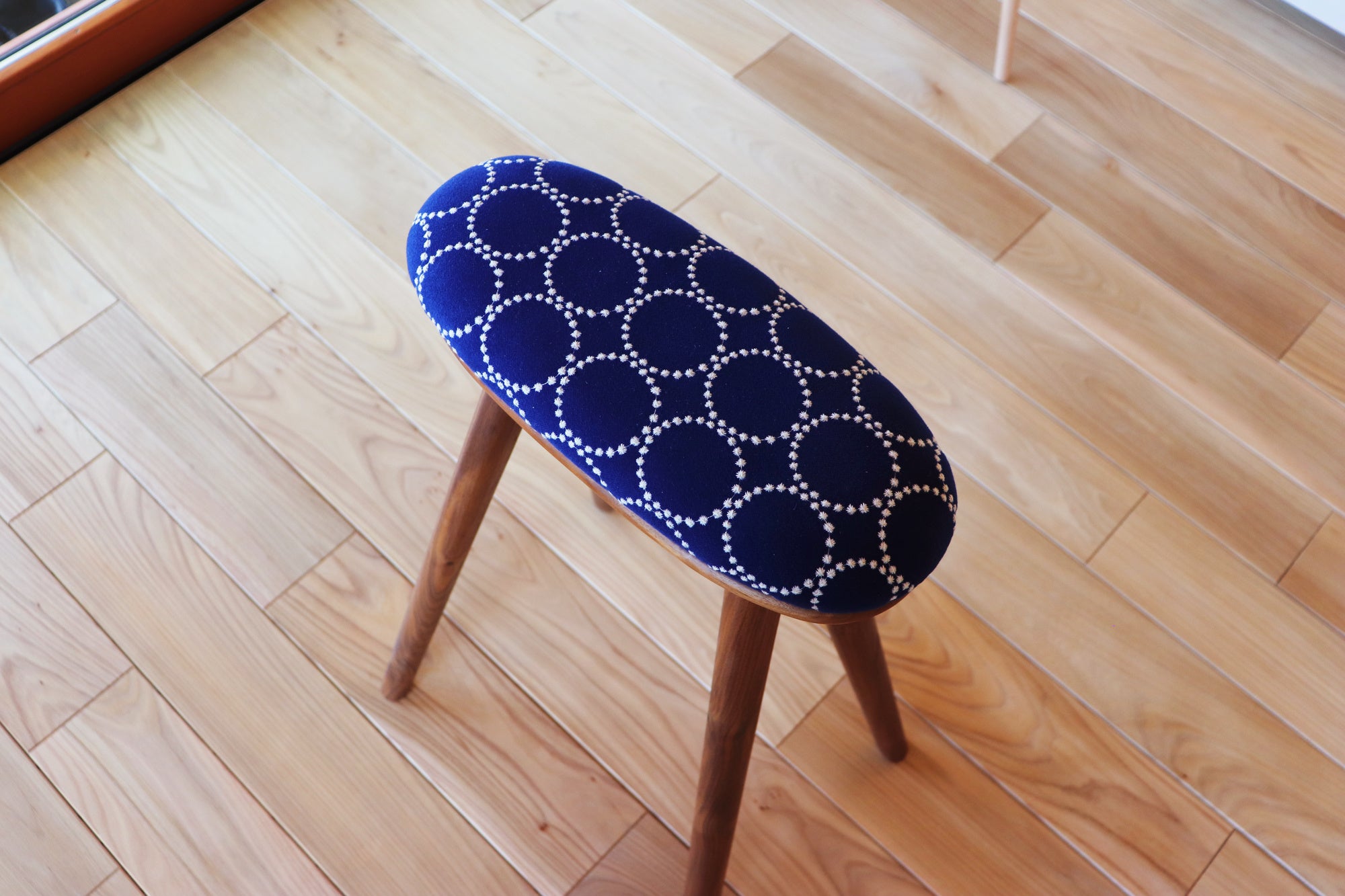 今回はその取り組みの一環として「ミナ ペルホネンの残布を使ったスツール」をナガノインテリア(福岡県)と共同で製作しました。