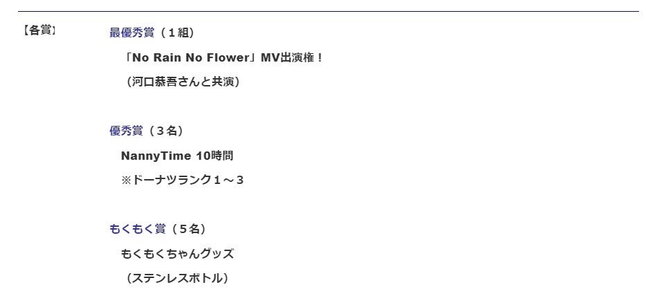 シンガーソングライター河口恭吾さんの「No Rain No Flower 」を課題曲としてオンラインコンテストを行います。NannyMEのNannyと一緒に好きな表現方法で練習し、その様子を動画撮影し各種SNSへ投稿するだけで、応募完了です。最優秀賞(1組)は、「No Rain No Flower」MVで河口恭吾さんと共演できます。