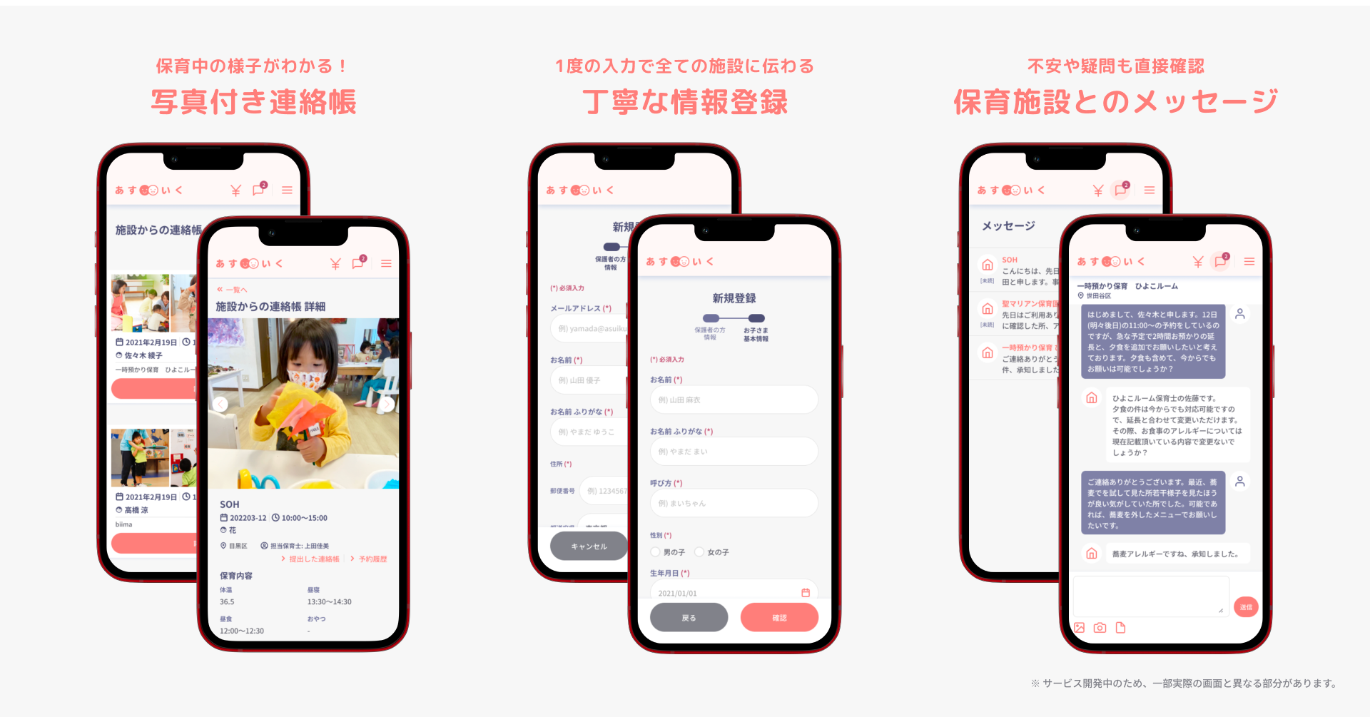 「自分の子どもを預けたくなるサービスを創る」という視点で、一時保育を手軽に予約できるだけでなく、お子様の安全と保護者の安心に徹底的にこだわりました