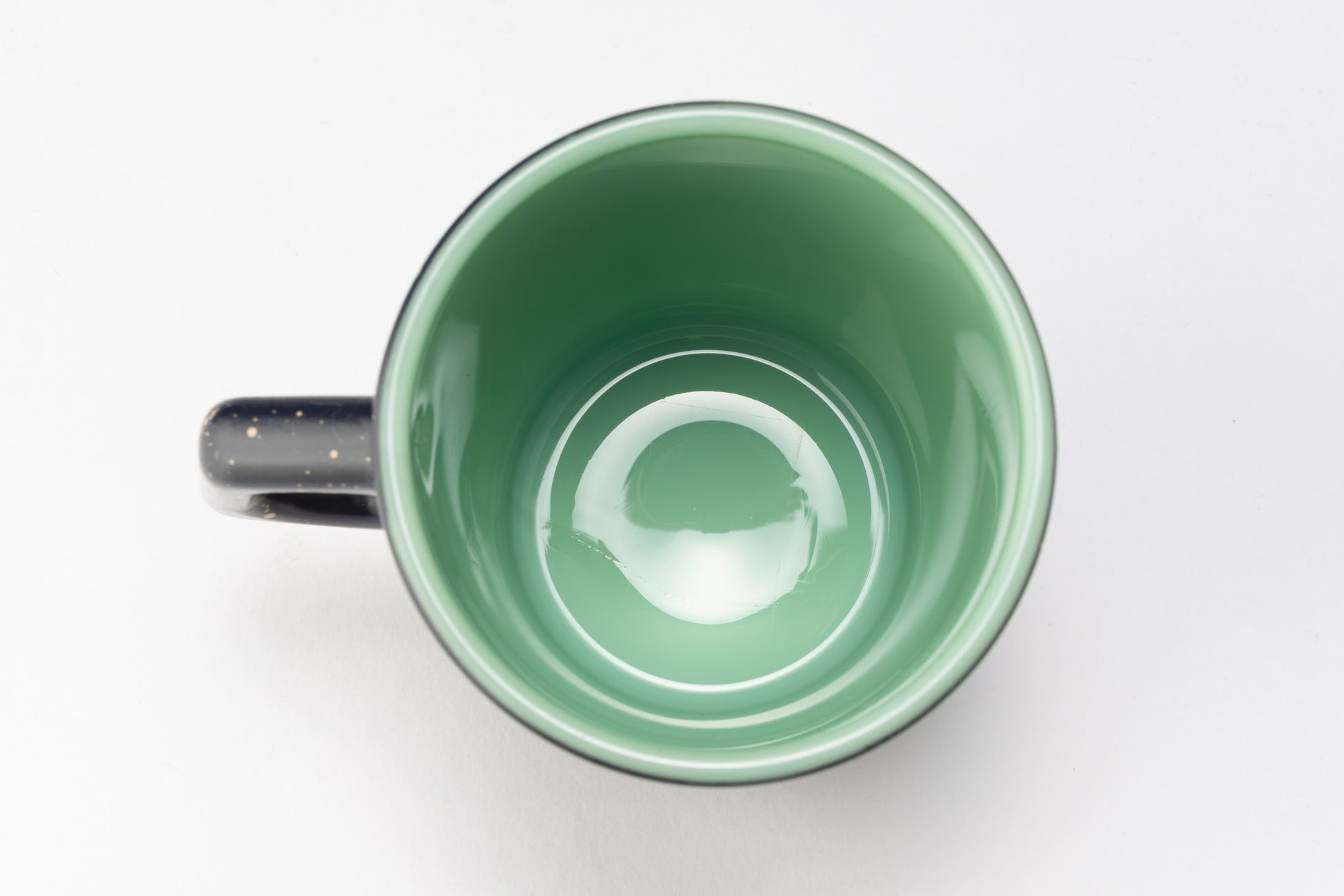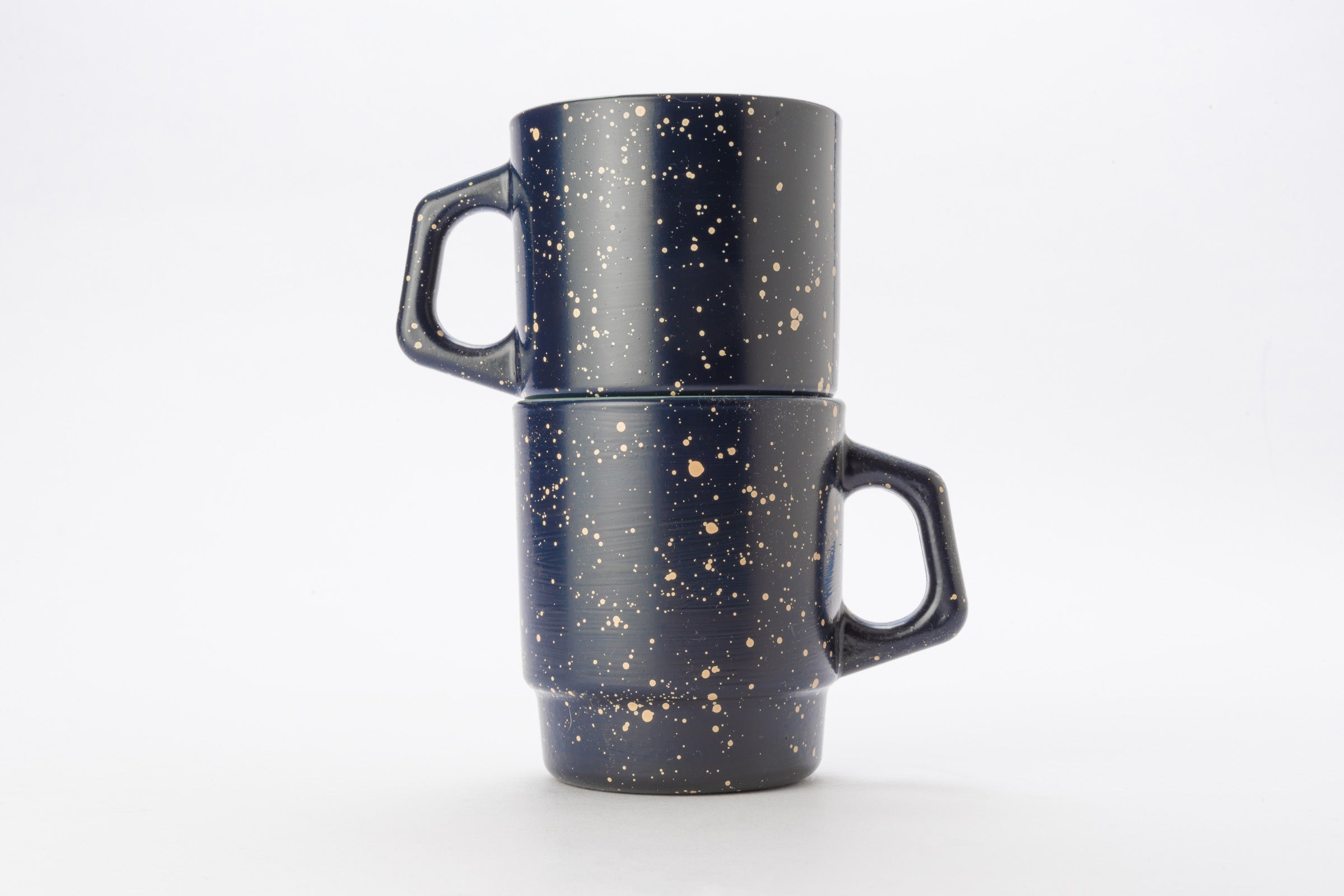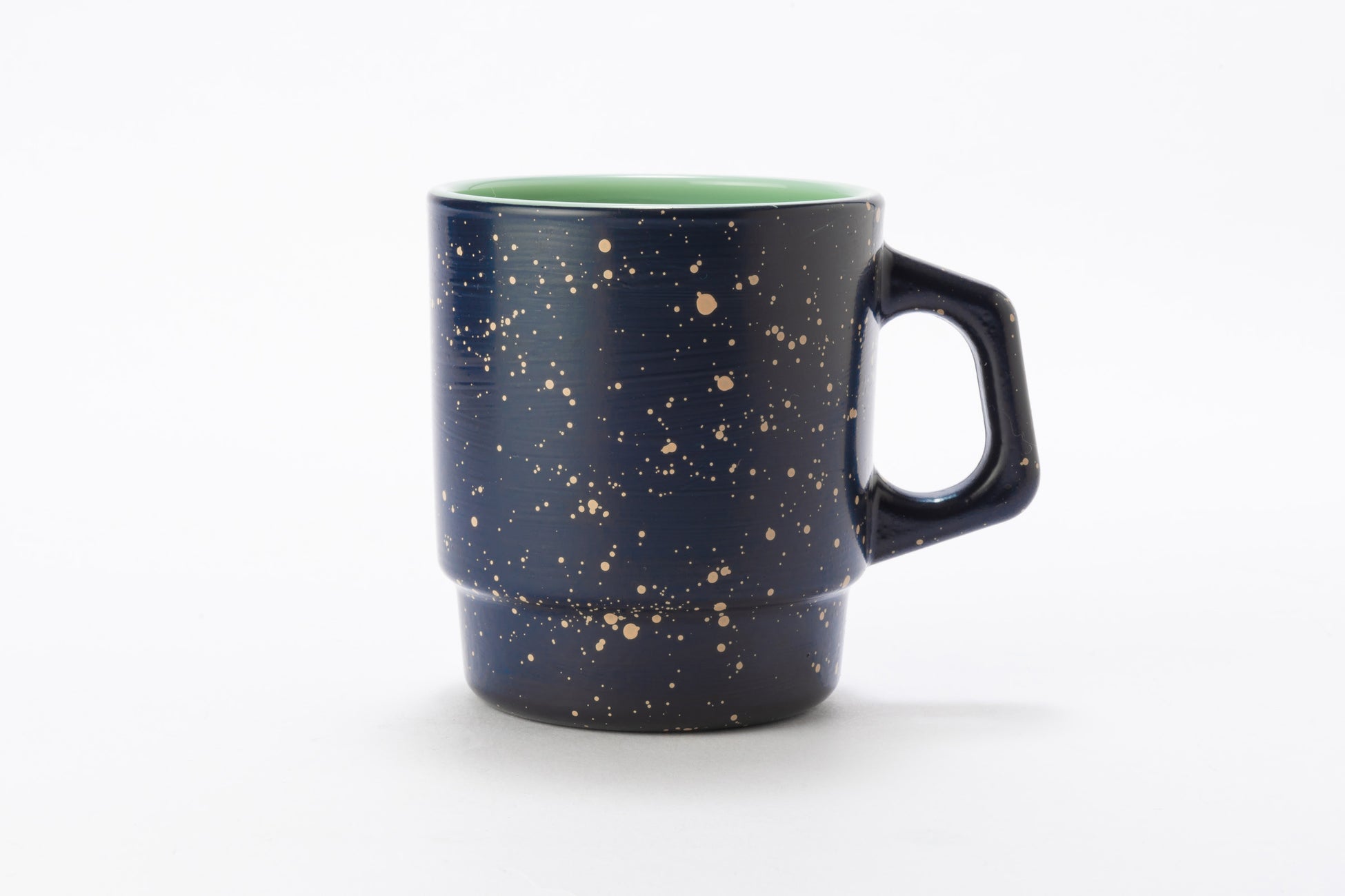 丁寧に漆を塗り上げた表面に、別の色漆を飛ばして柄を描き出したジェダイカラーのスタッキングマグ。