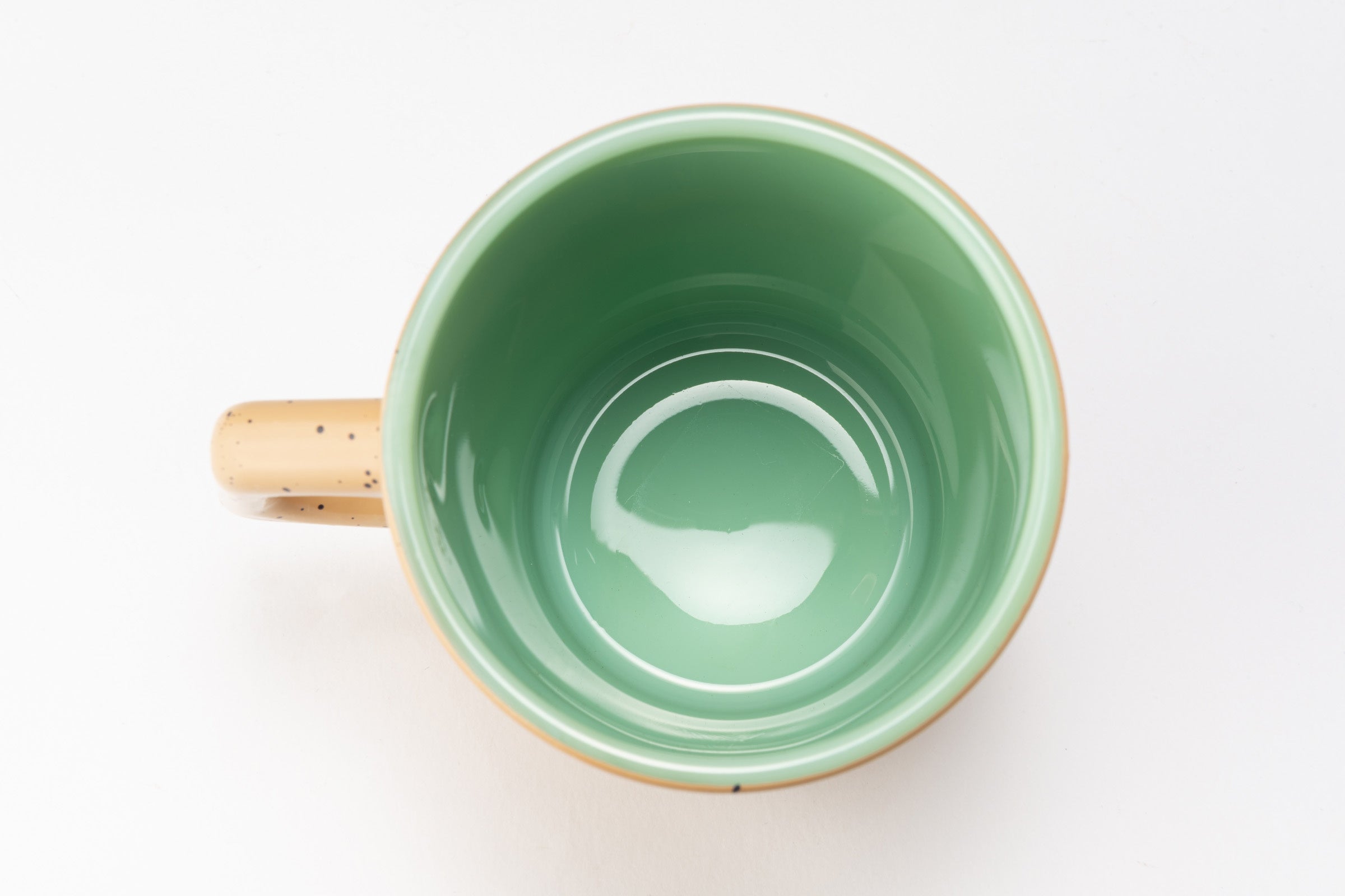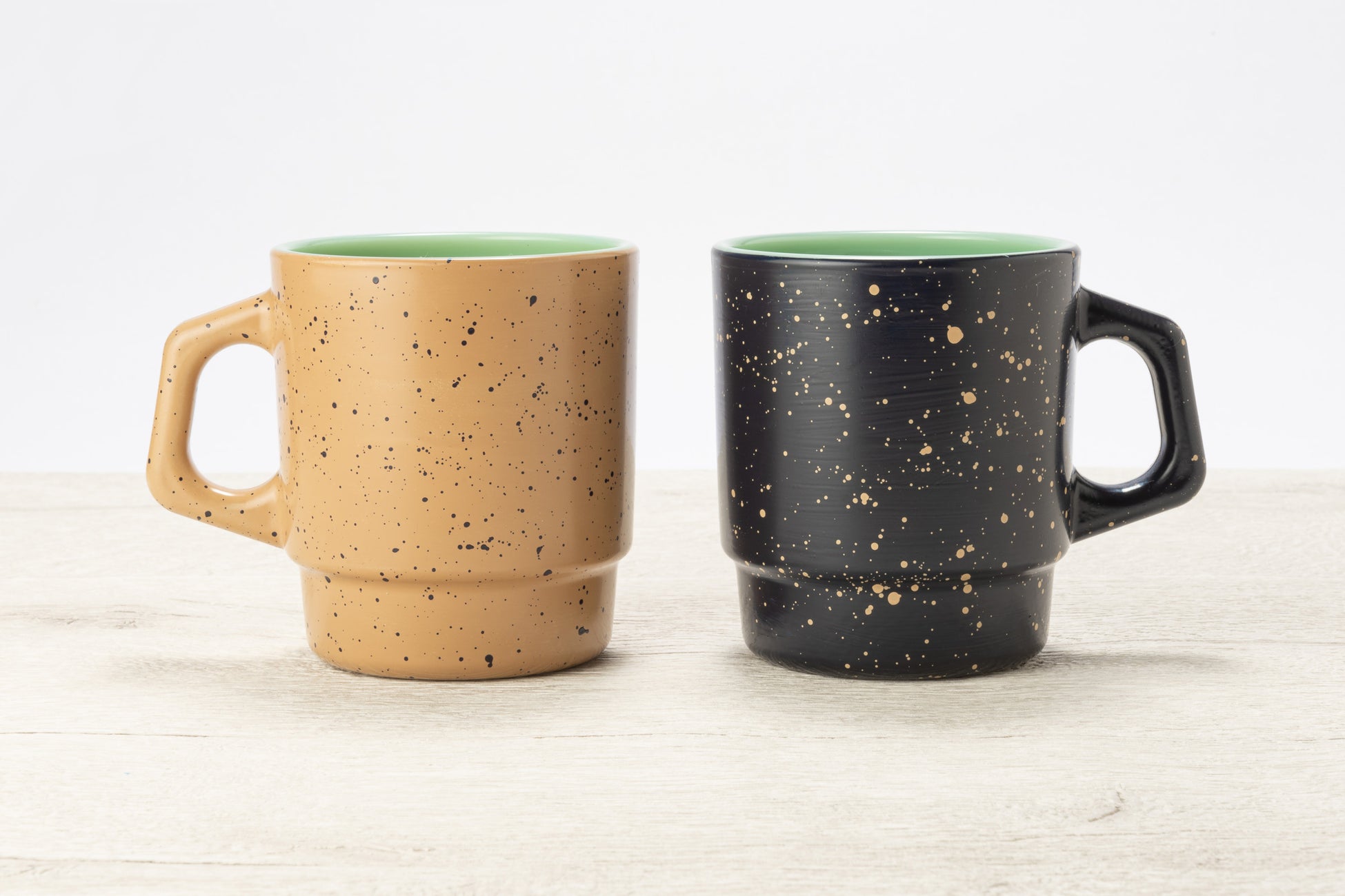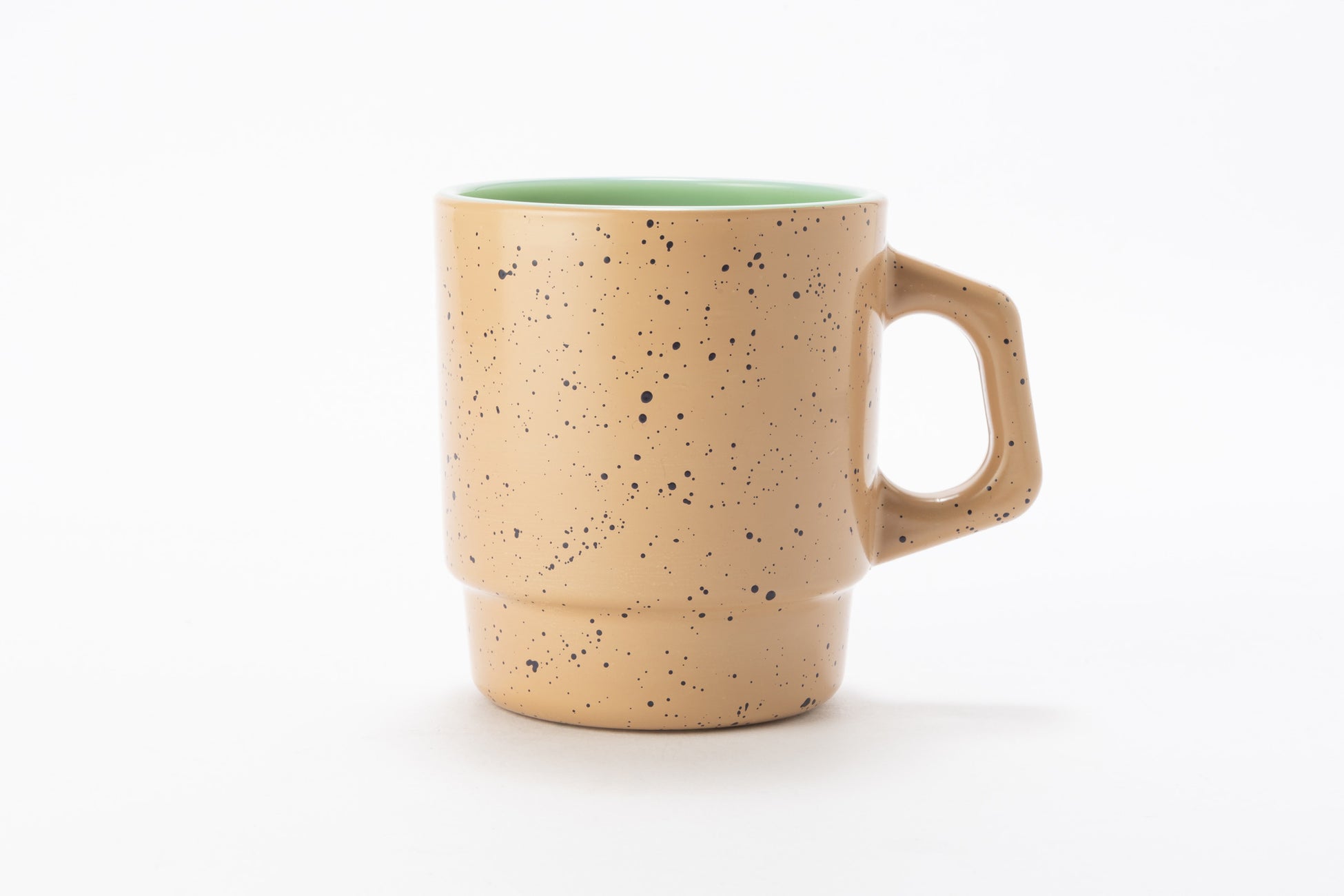 丁寧に漆を塗り上げた表面に、別の色漆を飛ばして柄を描き出したジェダイカラーのスタッキングマグ。