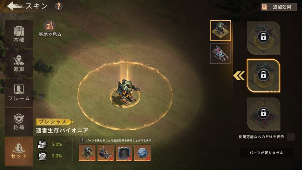 セットを全部集めると、追加で集結進軍スキンを獲得できます。集結に参加する味方の部隊には集結進軍スキンが適用されます!