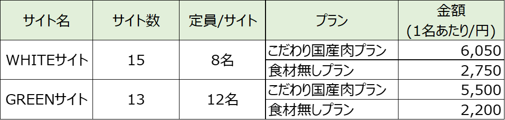 GREEN SITE 5,500円/一人(税込)