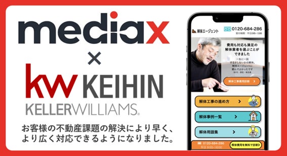 解体/外壁塗装のマッチングサービスを提供する株式会社MediaX(本社:大阪市北区、代表:栗島 啓)は、Keller Williams KEIHIN (株式会社One for All Realty 本社:東京都大田区、代表:深山 将史)との業務提携を開始致しました。