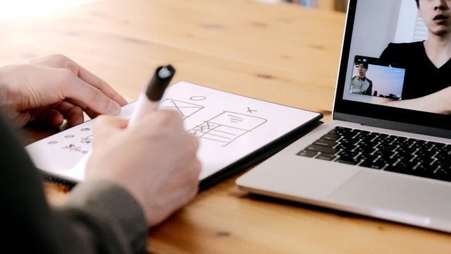 会議の最中でも、会話と並行して手元でメモをとれる。WIPEはPCやモニターの側においても邪魔にならないので、オンライン会議中でも自然に手元でメモを取ることができます。