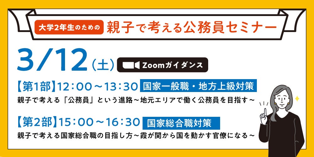 【大学新2年生(現1年生)対象】公務員を目指す親子のための進路ガイダンス