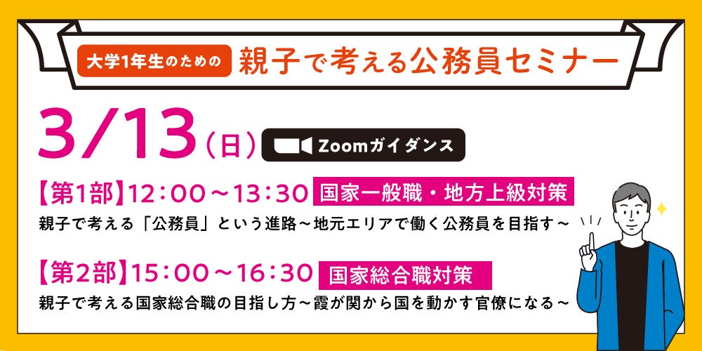 「公務員を目指す親子のための進路ガイダンス」を3月12日(土)・13日(日)にオンラインで開催