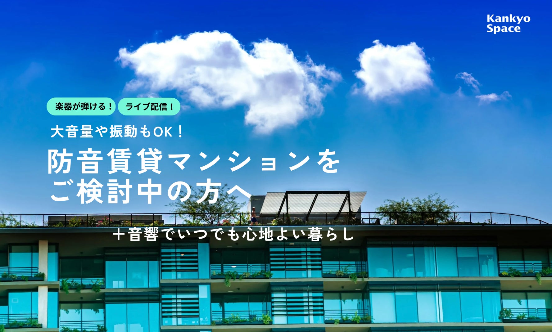 そこで、本サービスでは、防音賃貸マンションへの入居を希望される方に向け、プロ仕様のスタジオや大規模な音楽ホールから医療機関、教育施設、オフィス、個人住宅まで幅広く「快適な音環境づくり」を提供する当社が、新築・リノベ防音賃貸マンションの物件最新情報や、防音・音響工事の実例までお届けます。