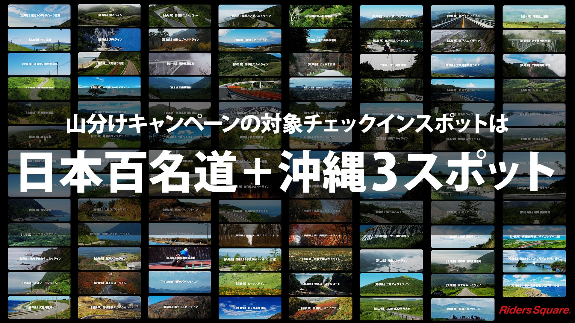 本キャンペーンの対象スポットは「日本百名道+沖縄の3スポット」の103スポット!