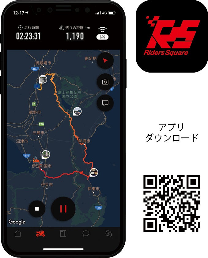 「Riders Square」はバイクが好きな人たちが、それぞれの「道」を記録できるログアプリです。