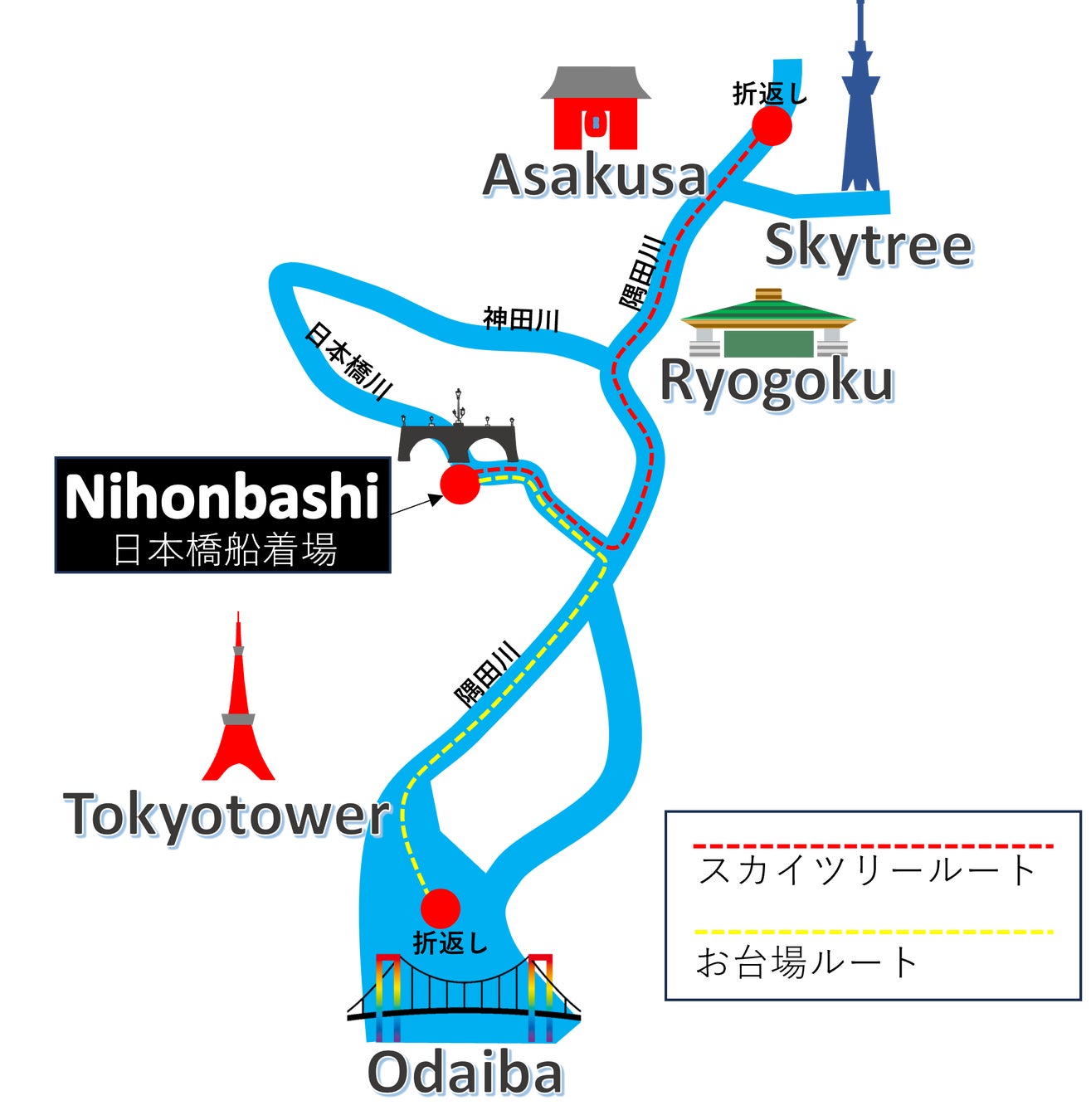 ルートは「スカイツリールート」「お台場ルート」の2種類になります。
