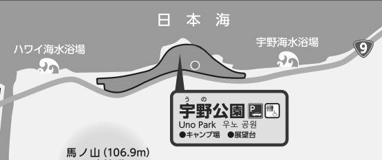 会場となるのは、公園内の駐車場。現在、宇野海岸では一部護岸工事が進められキャンプ場の利用は停止していますが、車でのアクセスが便利で日本海の美しい眺めを一望できる好立地。「日本のハワイ」として注目されるハワイ海水浴場に歩いて行ける距離で、買い物ができる「道の駅はわい」も車10分。ここを、市場が急拡大しているキャンピングカー対応の車内泊スポットとして整備活用することを計画。モニター参加者に実際に体験いただき、利用データ取得と課題抽出が今回の実証実験の目的です。